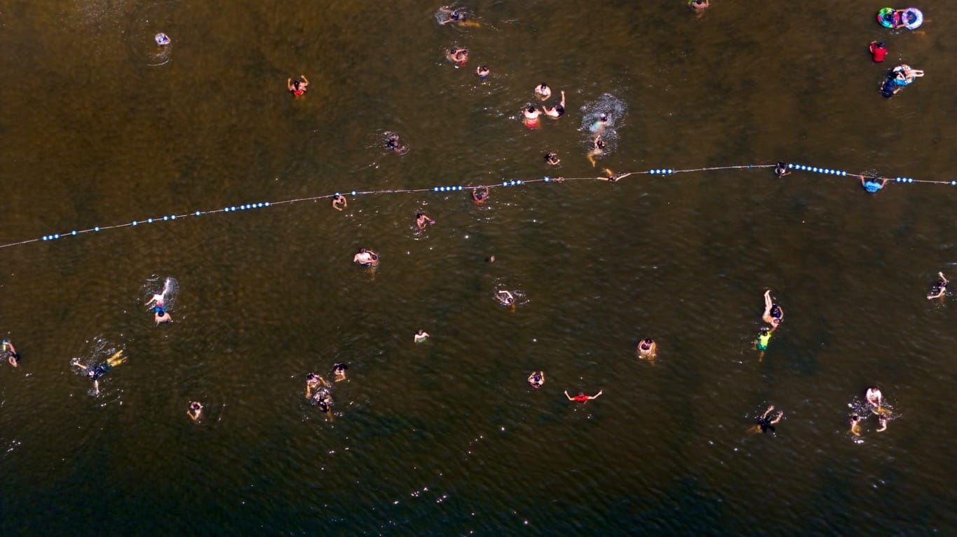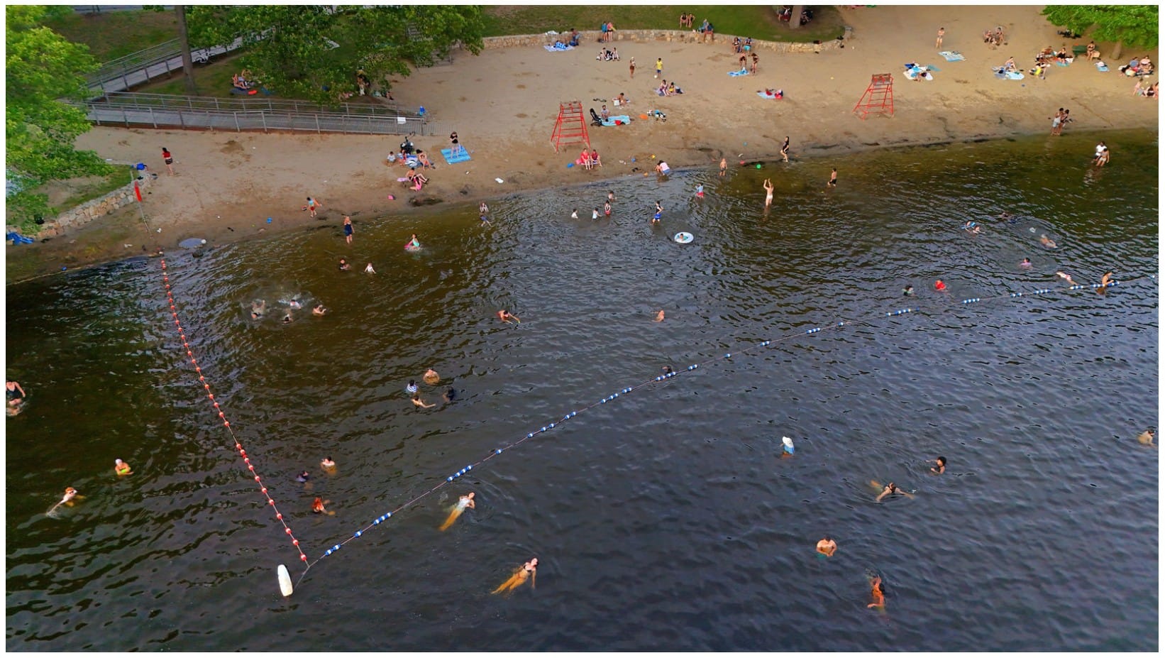 Frank sent up the drone and took some marvelous photos of local residents cooling off on the beach and enjoying the summer weather.