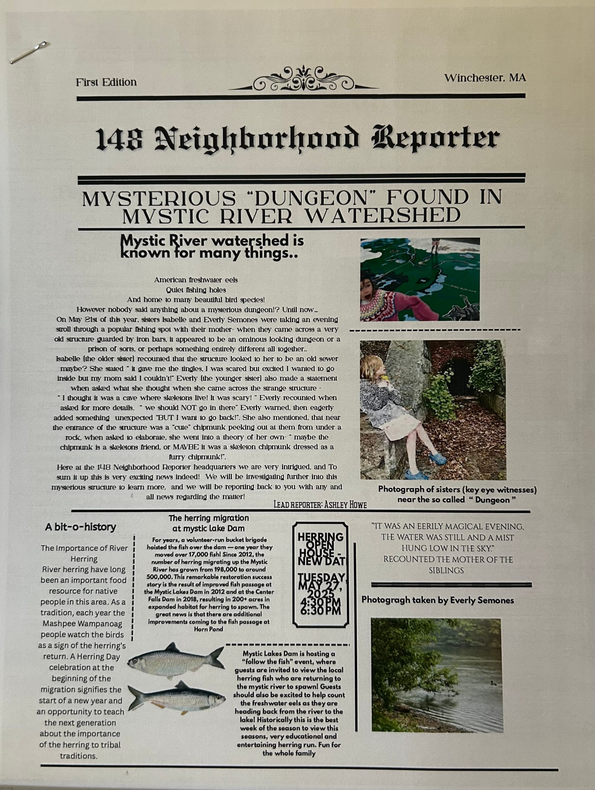 Aurora is the oldest and Ashley says, “She’s a wonderful talented kid and a good writer, plus she has a great sense of humor. Eight-year-old Isabelle brought the Reporter to read in her second-grade Muraco School’s show and tell. She was so excited to read it to the class.”