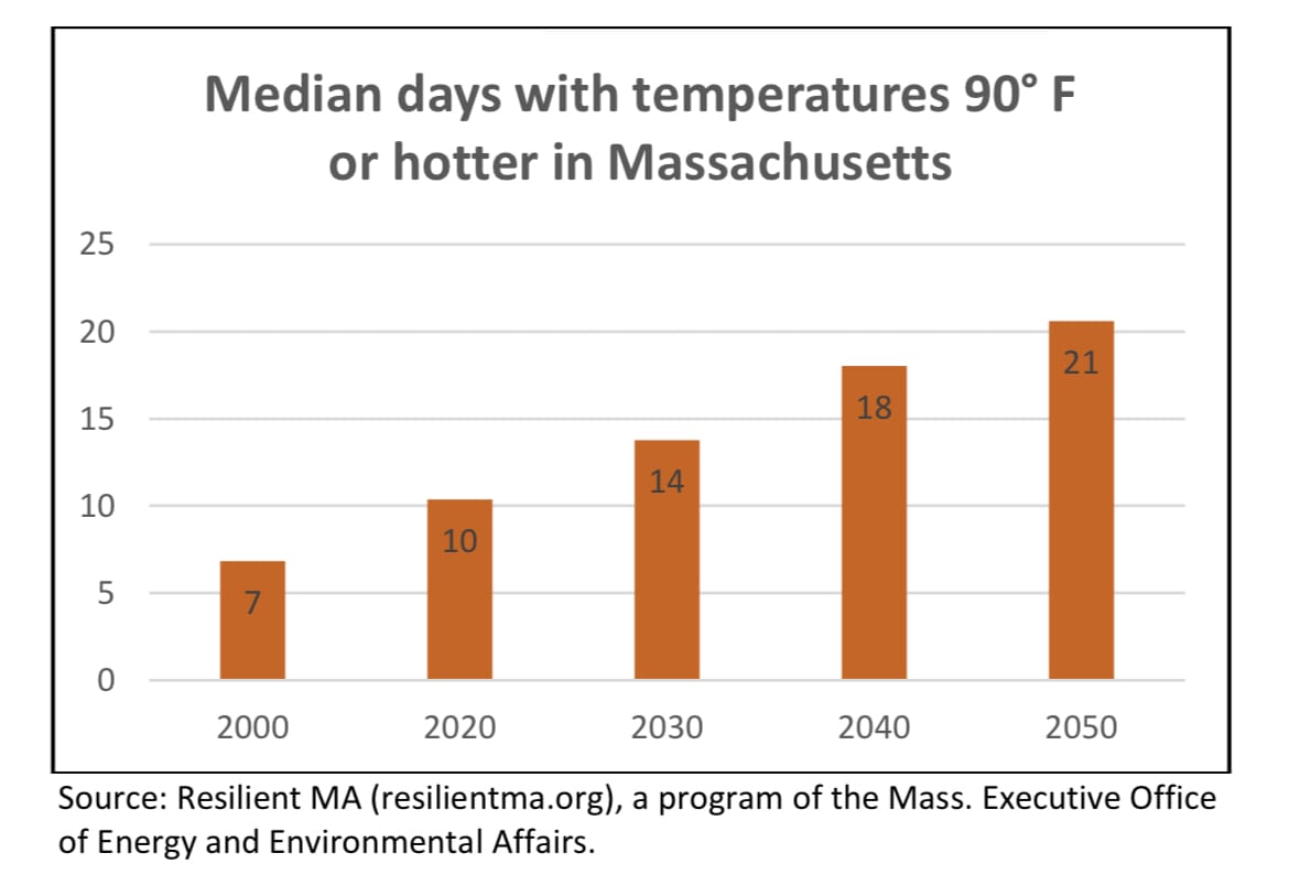 Climate projections show very hot days over 90 degrees will increase from approximately 10 per year currently to more than 20 by 2050. Trees provide vital relief through shade and evapotranspiration, which releases moisture into the air with a significant cooling effect involving tens of thousands of gallons of water per year.