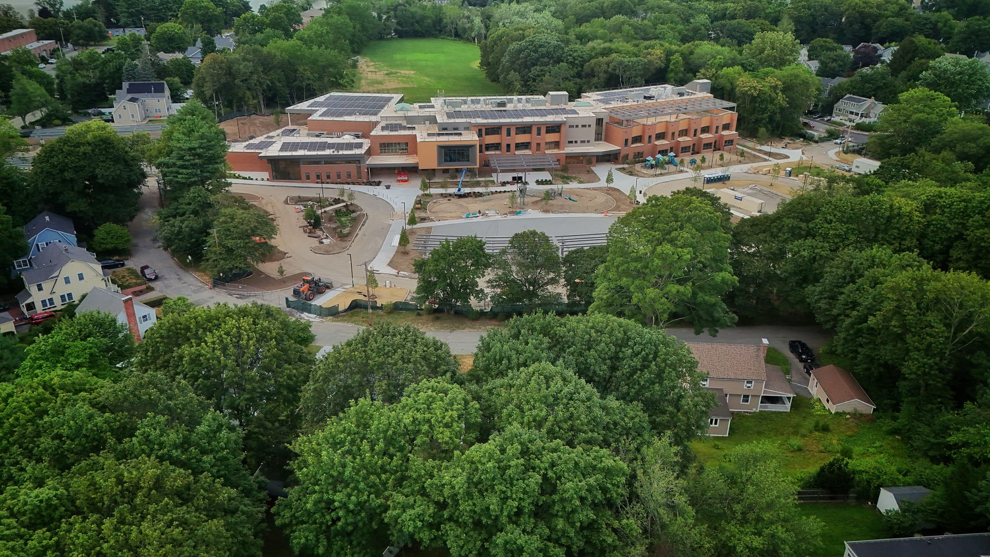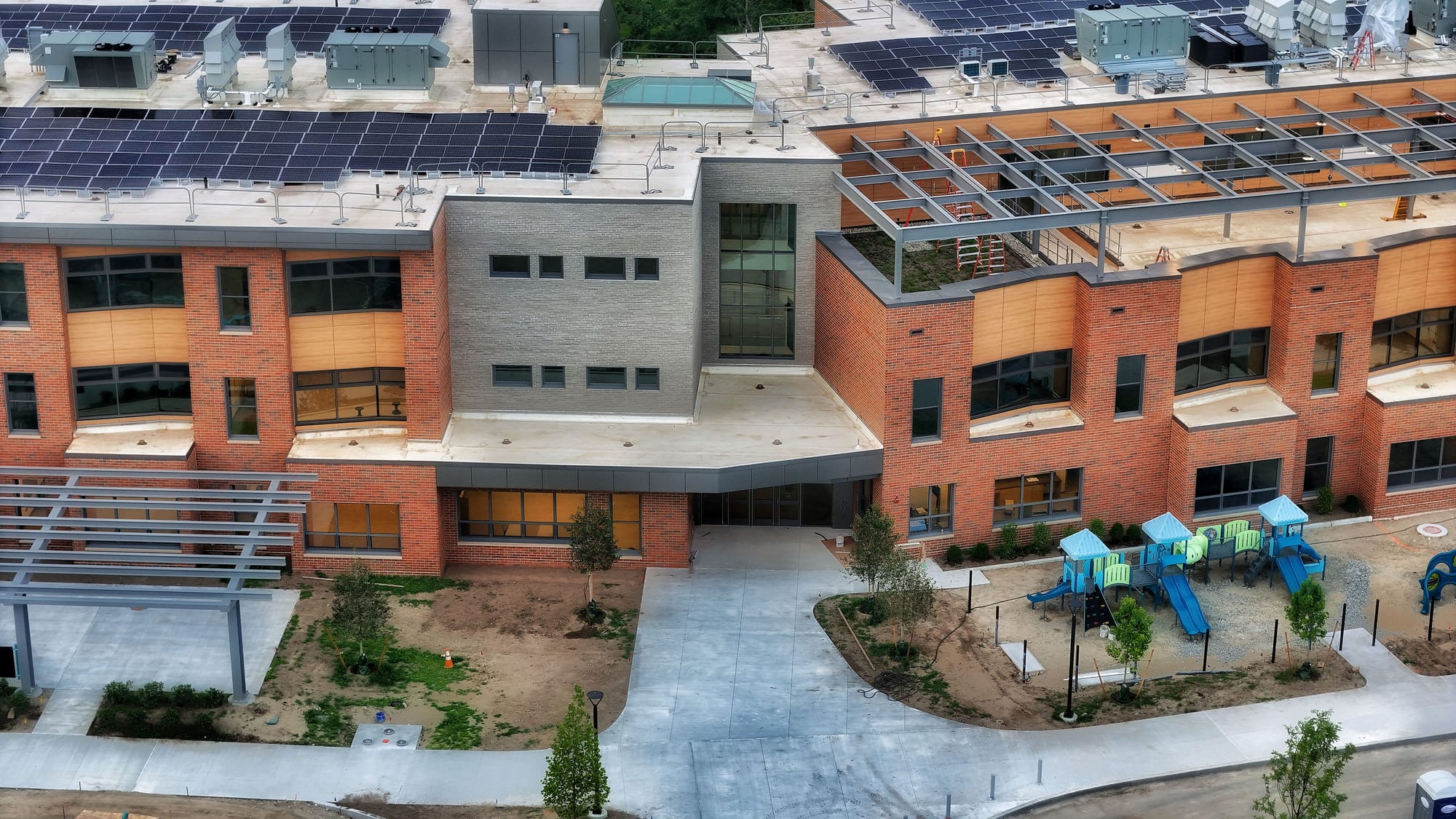 Since Siteman lives close by the construction site and his drone has access to the whole project, he has been able to document the building as it rises. You can now see the playground structures and solar panels on the roof.