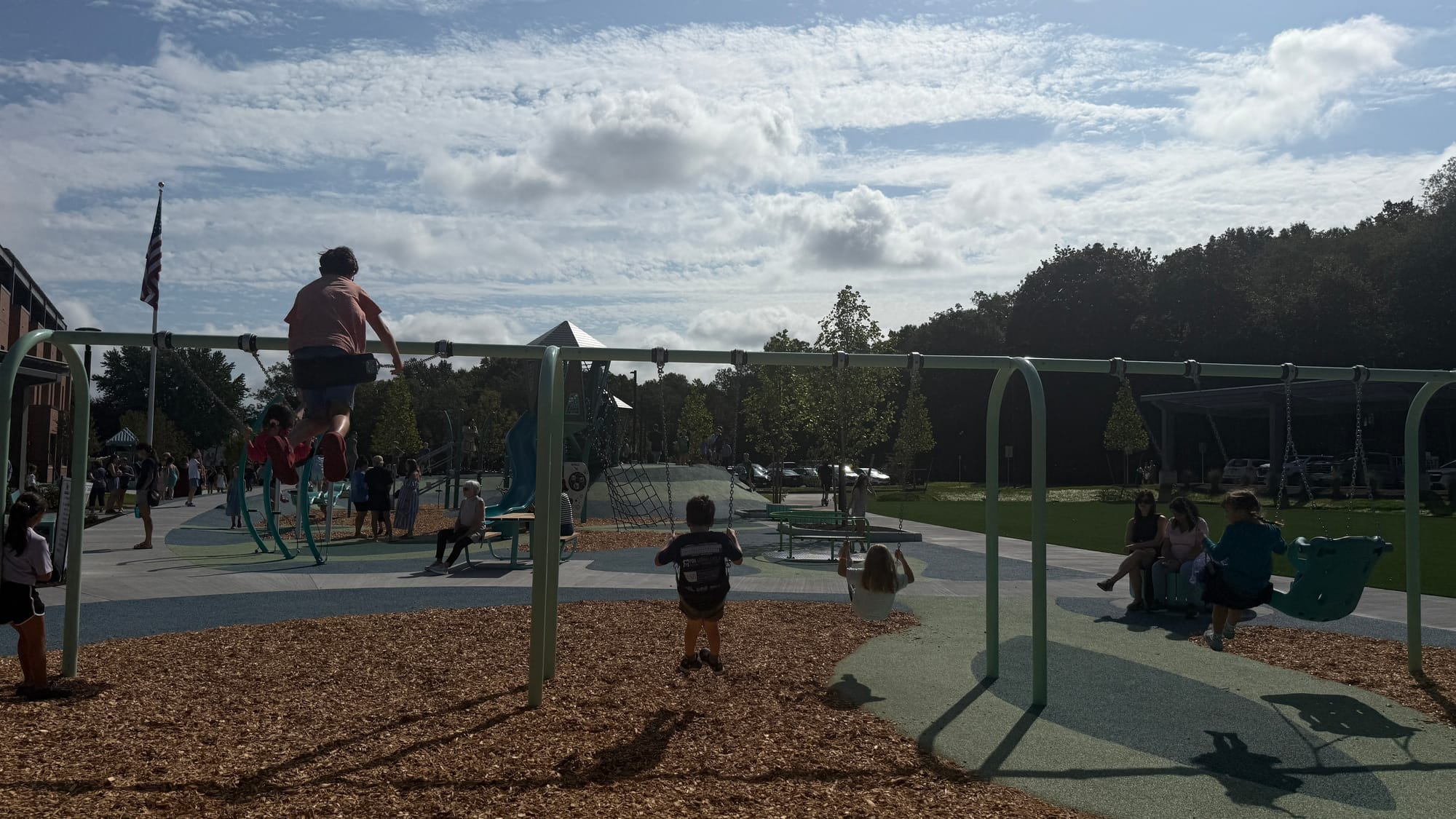 The morning sun cast long shadows across the new universal playground as hundreds of Winchester families streamed through the doors of their community’s latest educational investment Monday morning.