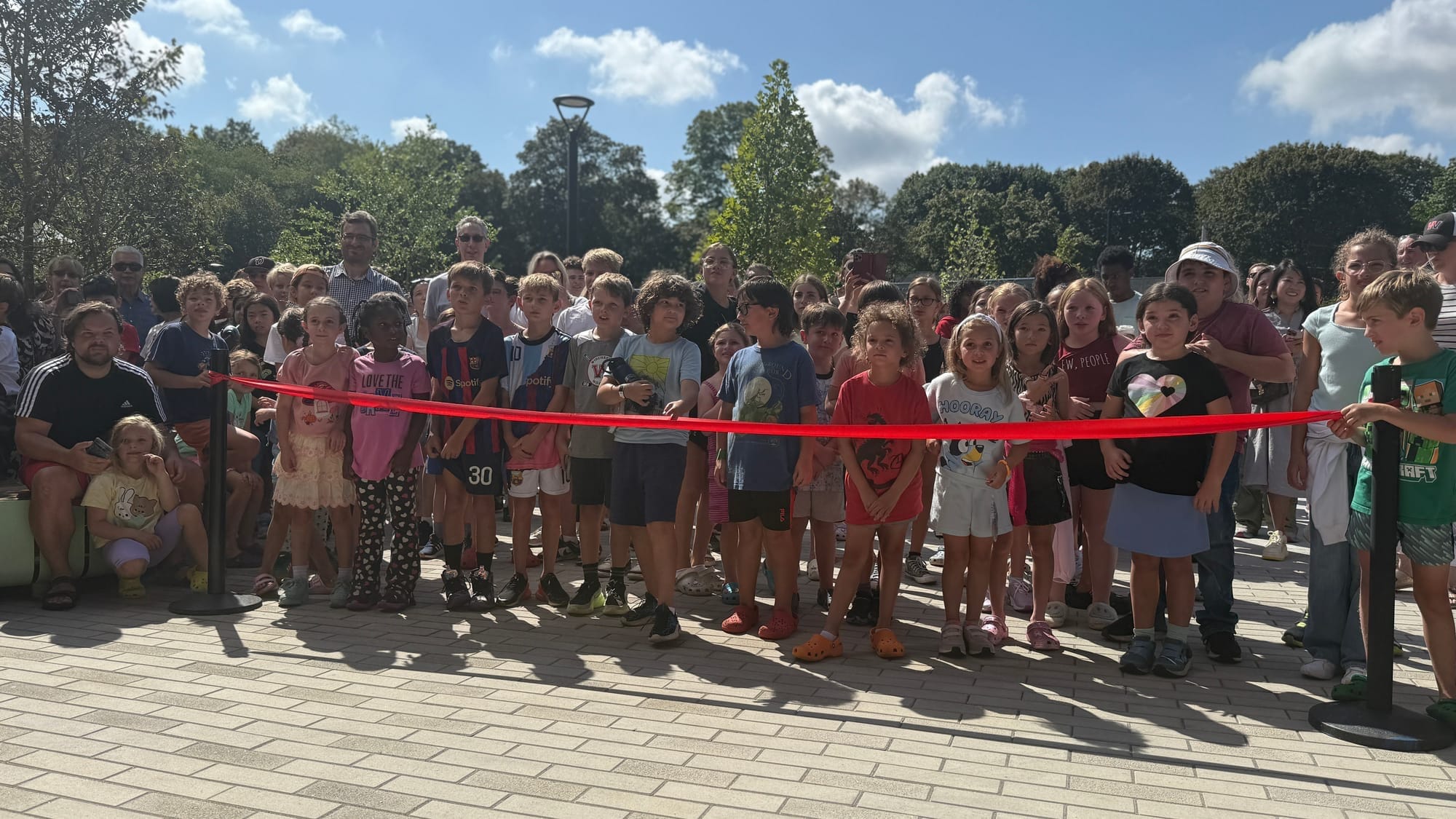 As Monday’s celebration continued into the late morning, families explored classrooms and corridors that will soon fill with daily learning. Children tested swings on playground equipment while parents gathered in small groups, sharing anticipation for the upcoming school year.