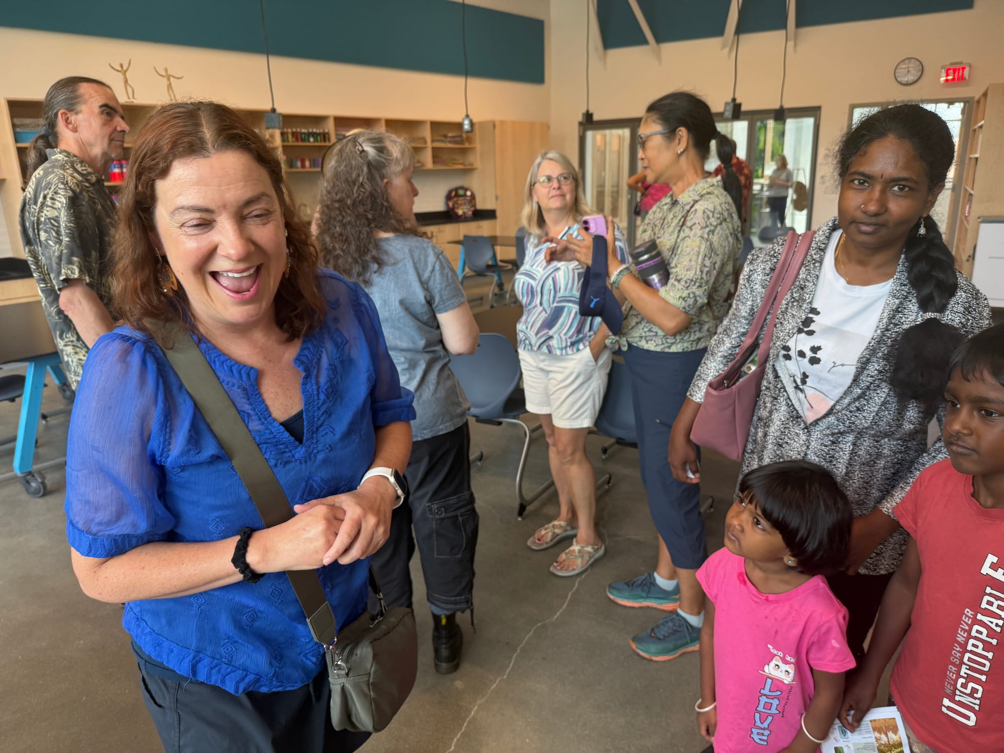 The celebration unfolded across multiple levels and outdoor spaces. Families sampled cupcakes decorated with school logos in the bright cafeteria while children explored specialized learning environments. The gymnasium echoed with bouncing basketballs as parents admired the regulation court with its gleaming maple floors.