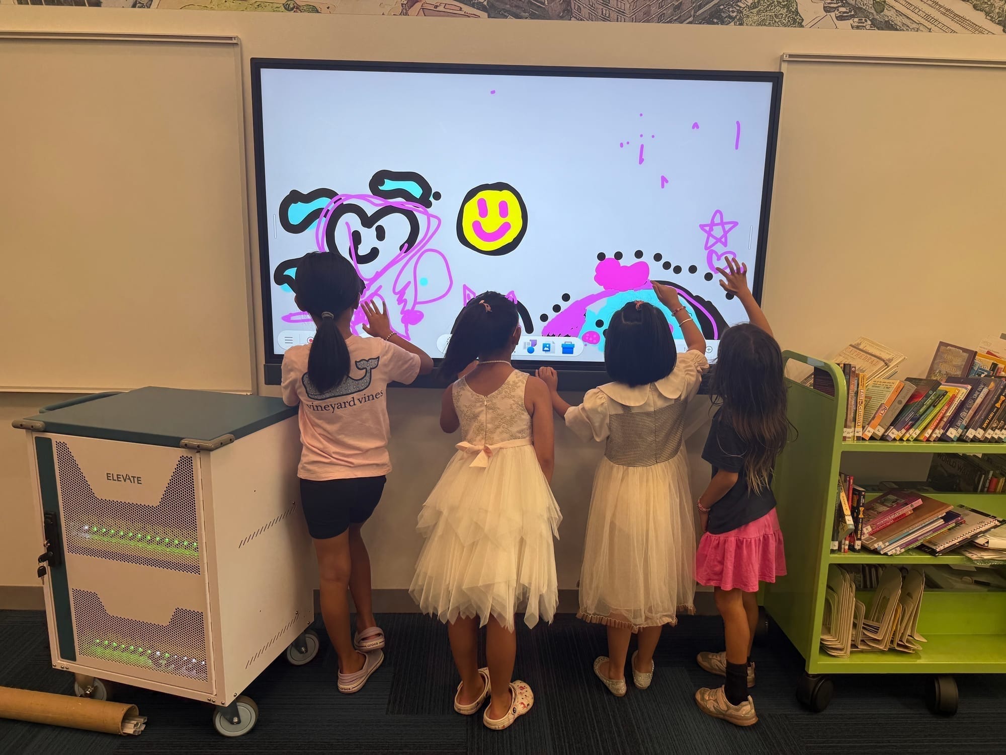 Parents carried toddlers past floor-to-ceiling windows while older siblings raced ahead to test interactive displays in the media center.