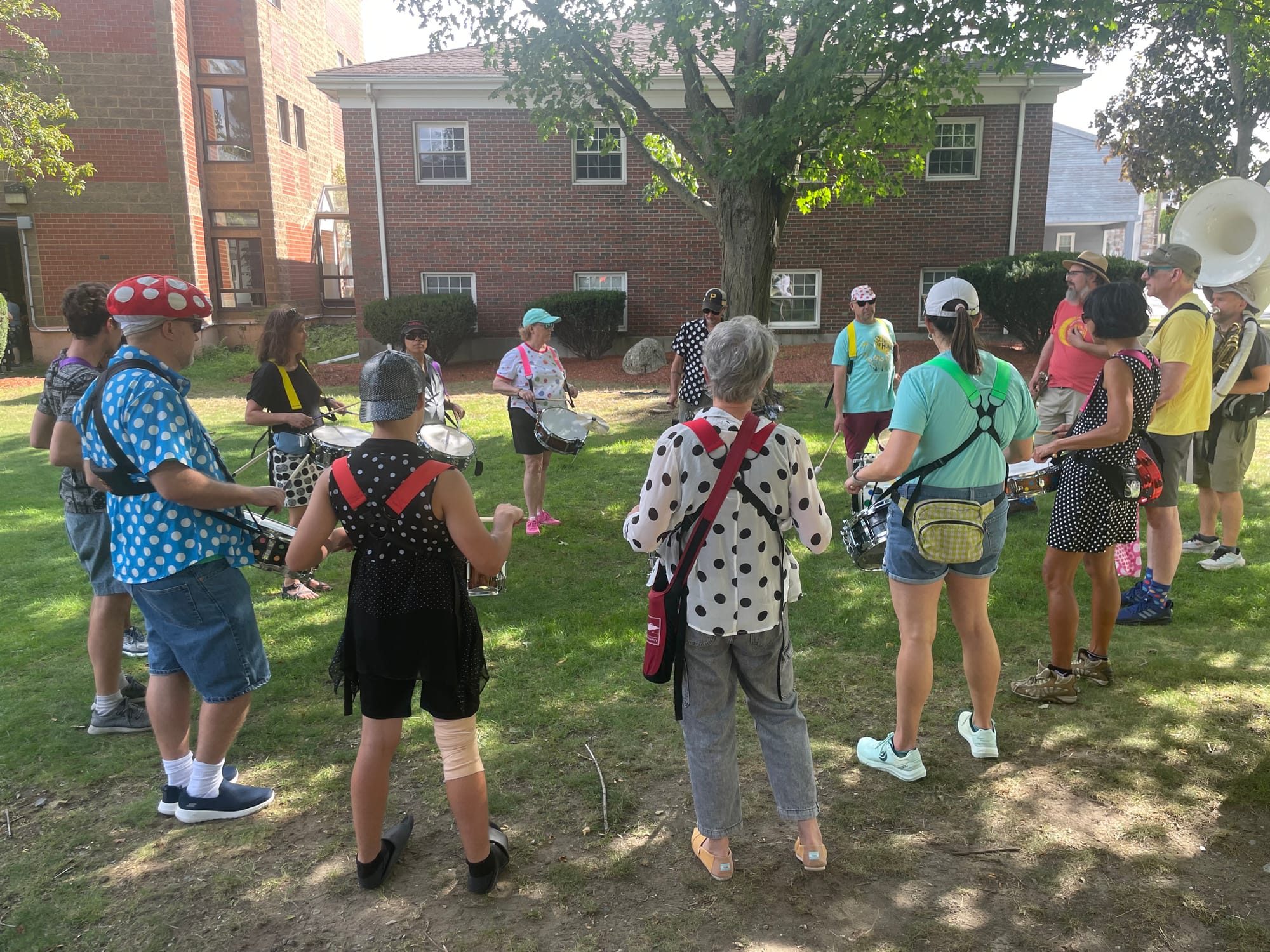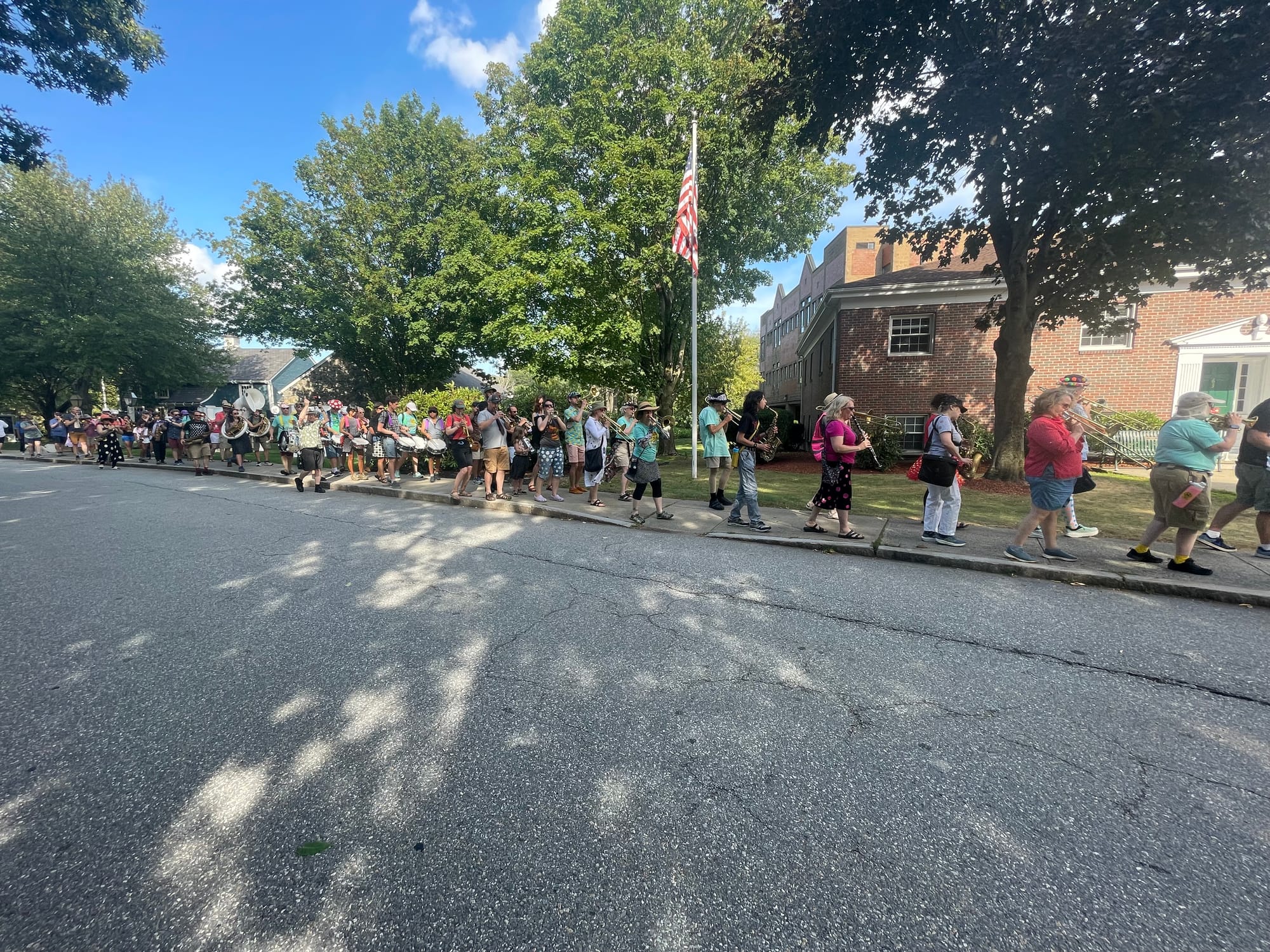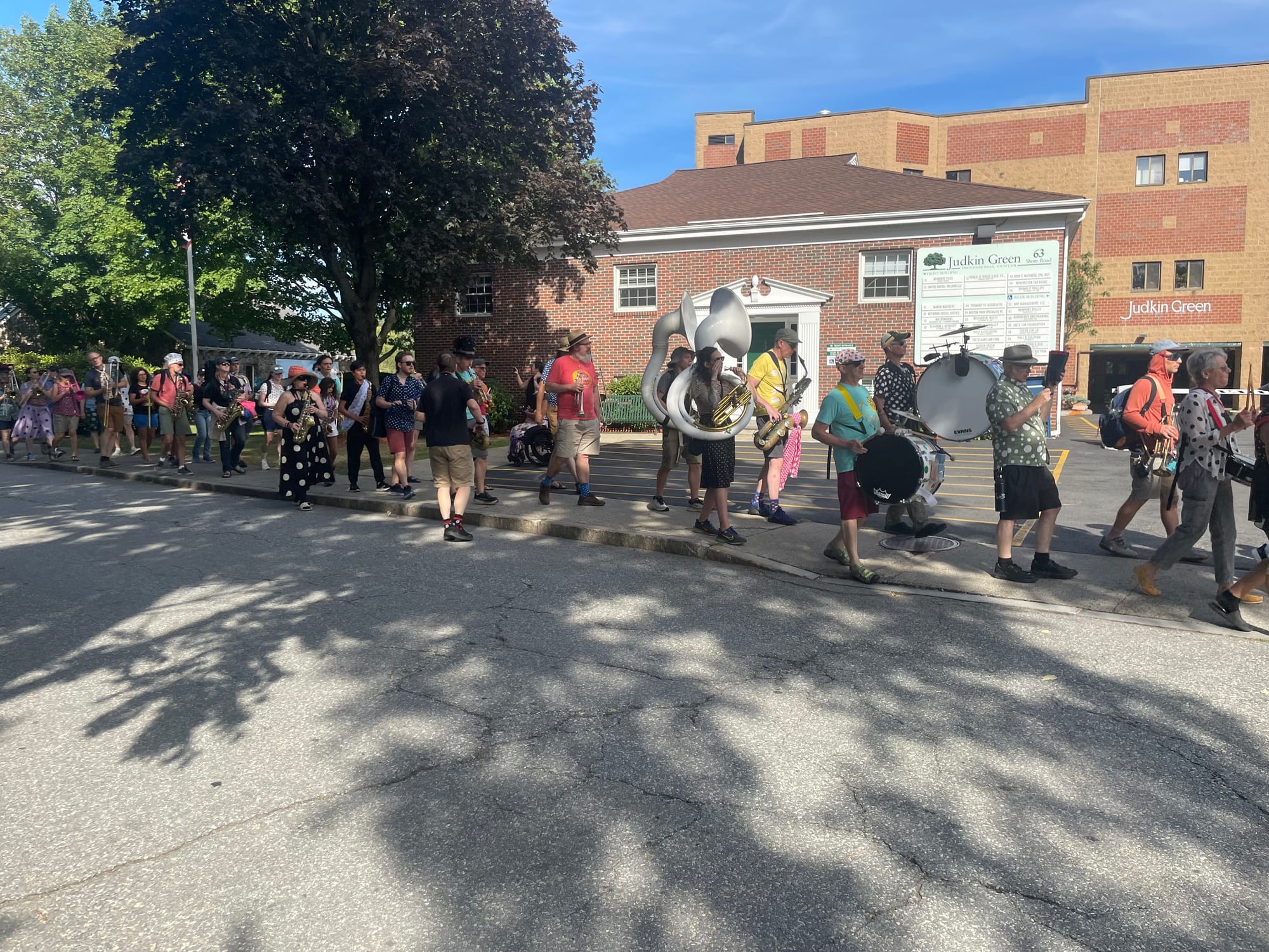 As the School of HONK marched forward, trombones blared, trumpets soared, and the joy of music infected more and more people. With over 80 players of all ages, backgrounds, instruments and abilities, School of HONK was impossible to ignore as the group marched from its meet-up spot at the Griffin Museum to the Town Common.