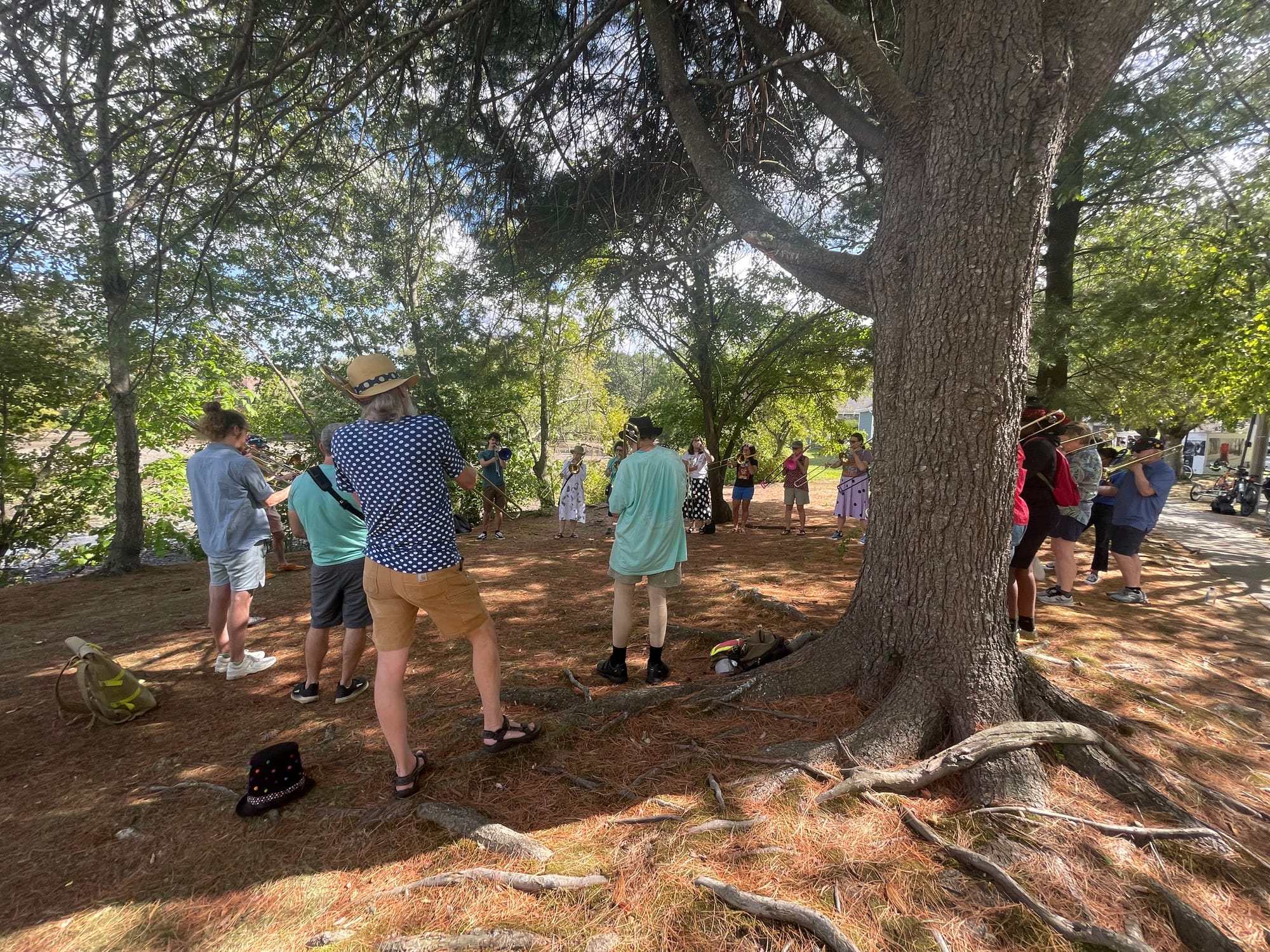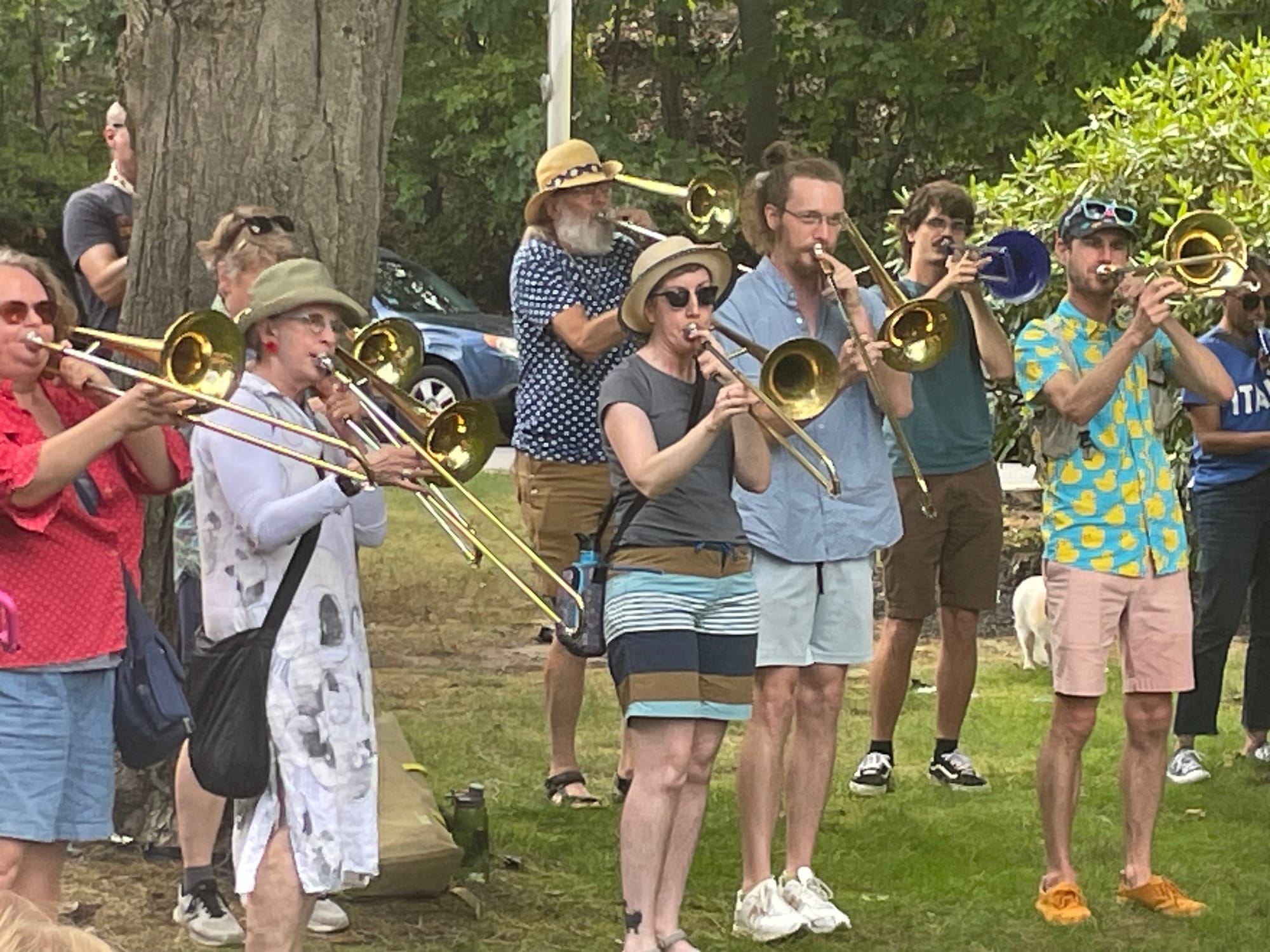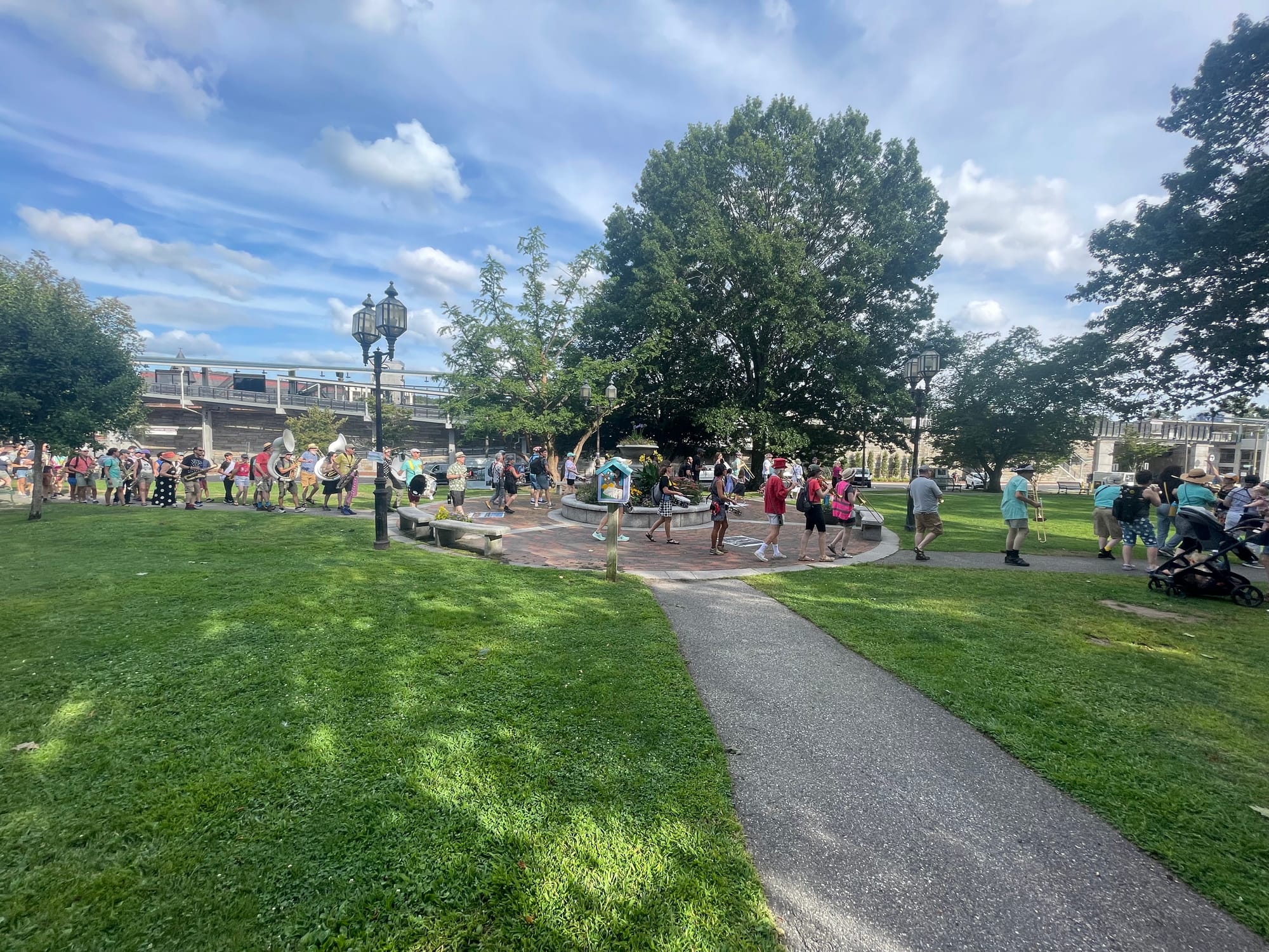 As the School of HONK marched forward, trombones blared, trumpets soared, and the joy of music infected more and more people. With over 80 players of all ages, backgrounds, instruments and abilities, School of HONK was impossible to ignore as the group marched from its meet-up spot at the Griffin Museum to the Town Common.