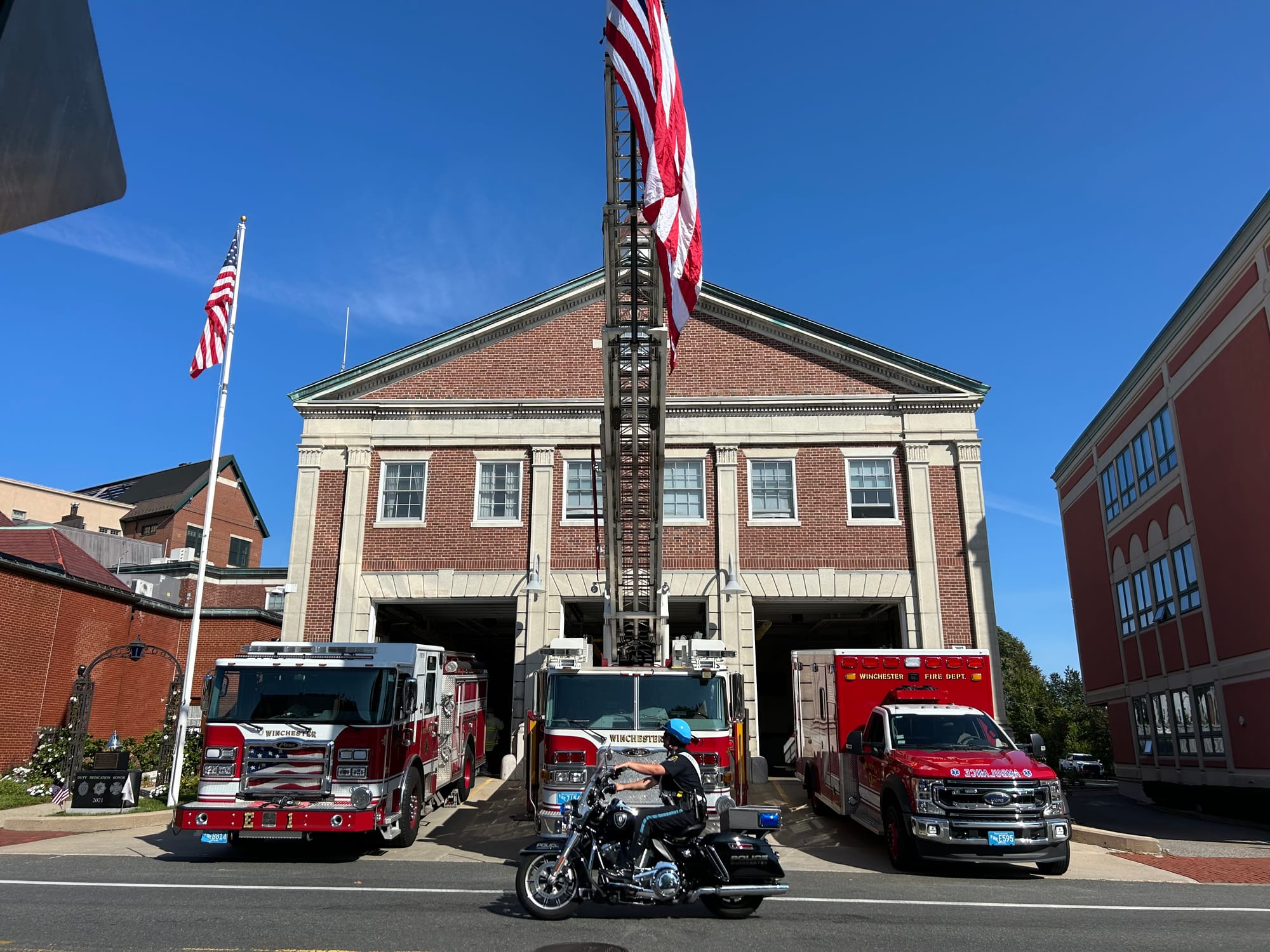 At 10 a.m. on Sept. 11, 2025 Winchester held a ceremony in remembrance of the events of 9/11 at the Winchester Fire Department headquarter in downtown Winchester.