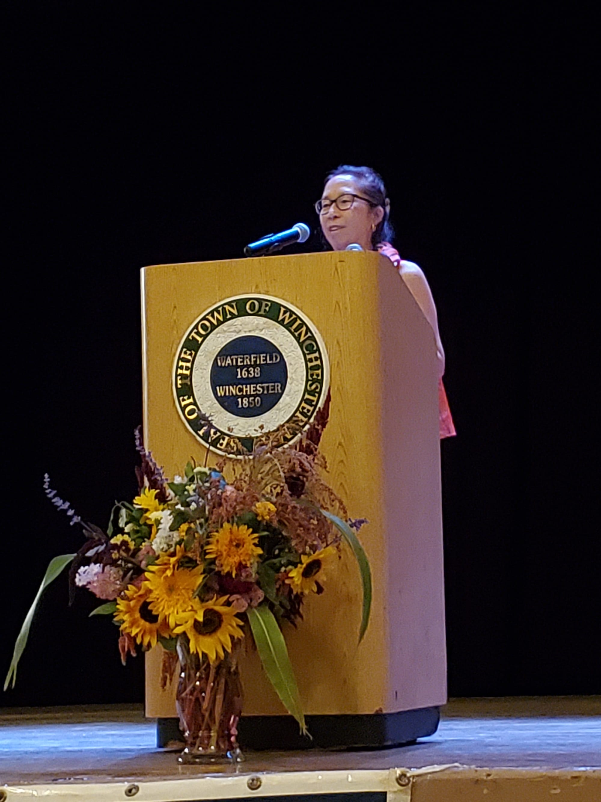 Speakers on Sept. 18 included Trimarchi, Sen. Patricia Jehlen, Rep. Michael Day, President of Arts Winchester Wong-Doo, Winchester News’ Board of Directors President Tara Hughes, independent filmmaker Peter Engeldrum, Town Meeting member Charlene Band and Westner’s daughter, Elisabeth.