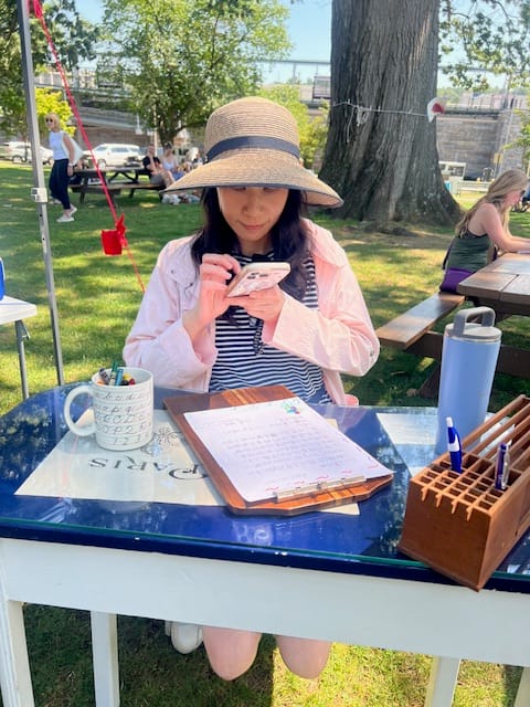 Winchester residents give letter writing a whirl at the Letters Trellis booth. COURTESY PHOTOS/LETTERS TRELLIS
