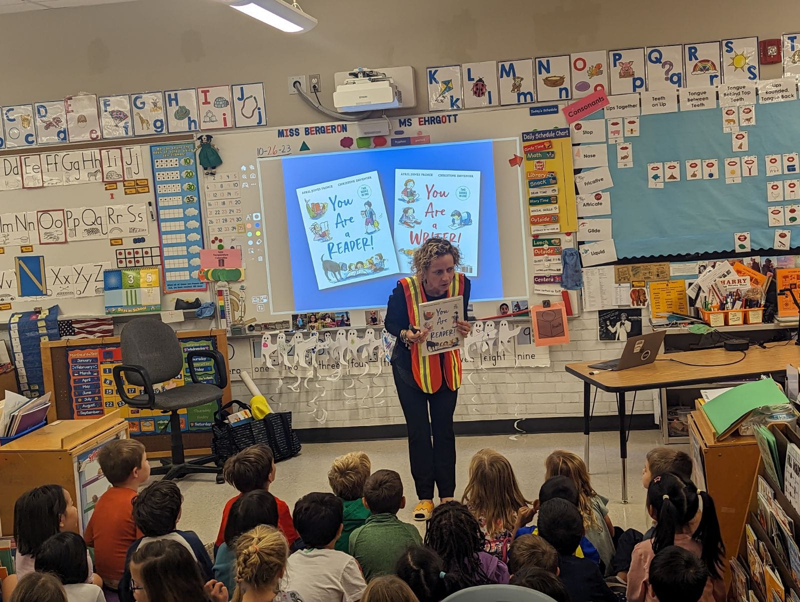 Carrie Finison, a picture book author, has been a returning participant since her first time during the pandemic in 2021. She said she enjoys presenting at Authorfest every year because of how engaged the students are.