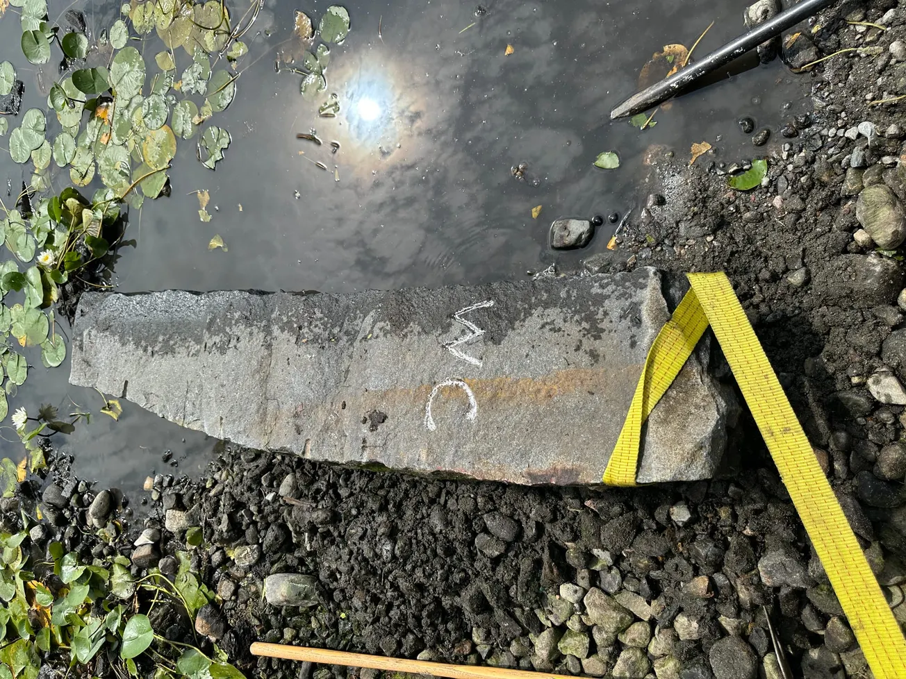 So Engeldrum and Swanton decided to check the granite post lying in Mystic Lake, but they had to wait until the lake level receded. Well this summer Mystic Lake was low enough for them to excavate the old post.
