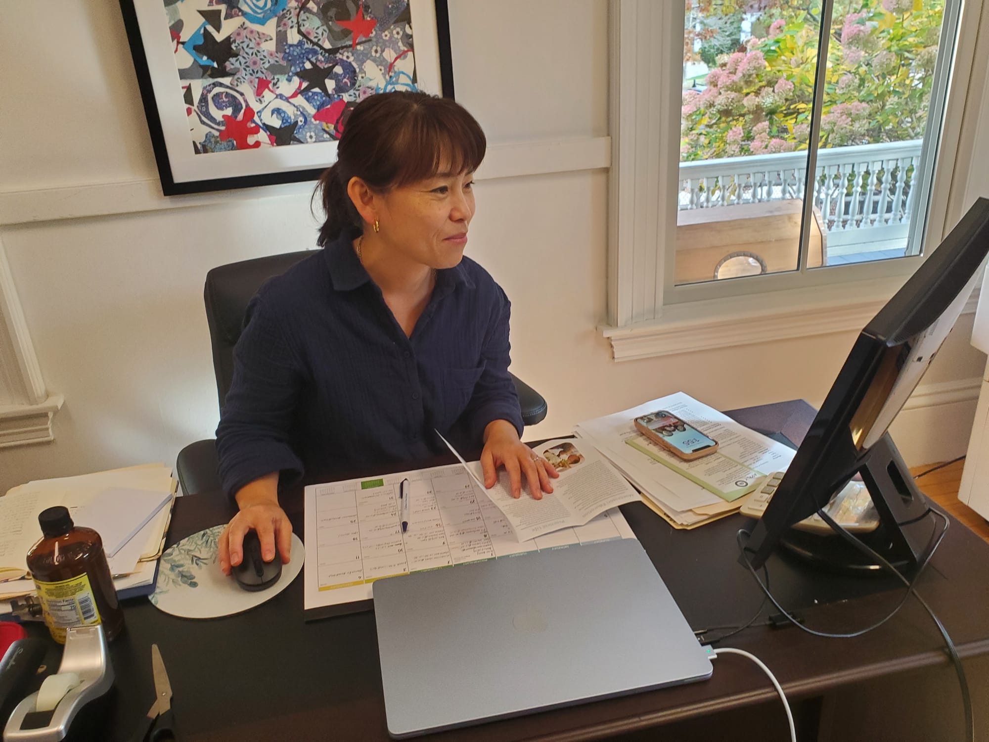 It’s a sunny fall afternoon at the Children’s Own School (COS) on Main Street. Parents are shuffling in and out for conferences, an alarm is going off and Hiro Sudachi is sitting behind her desk.