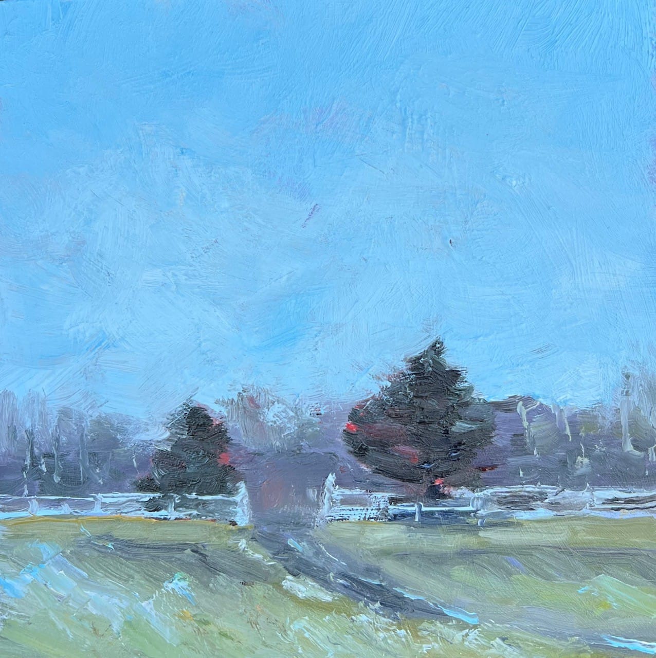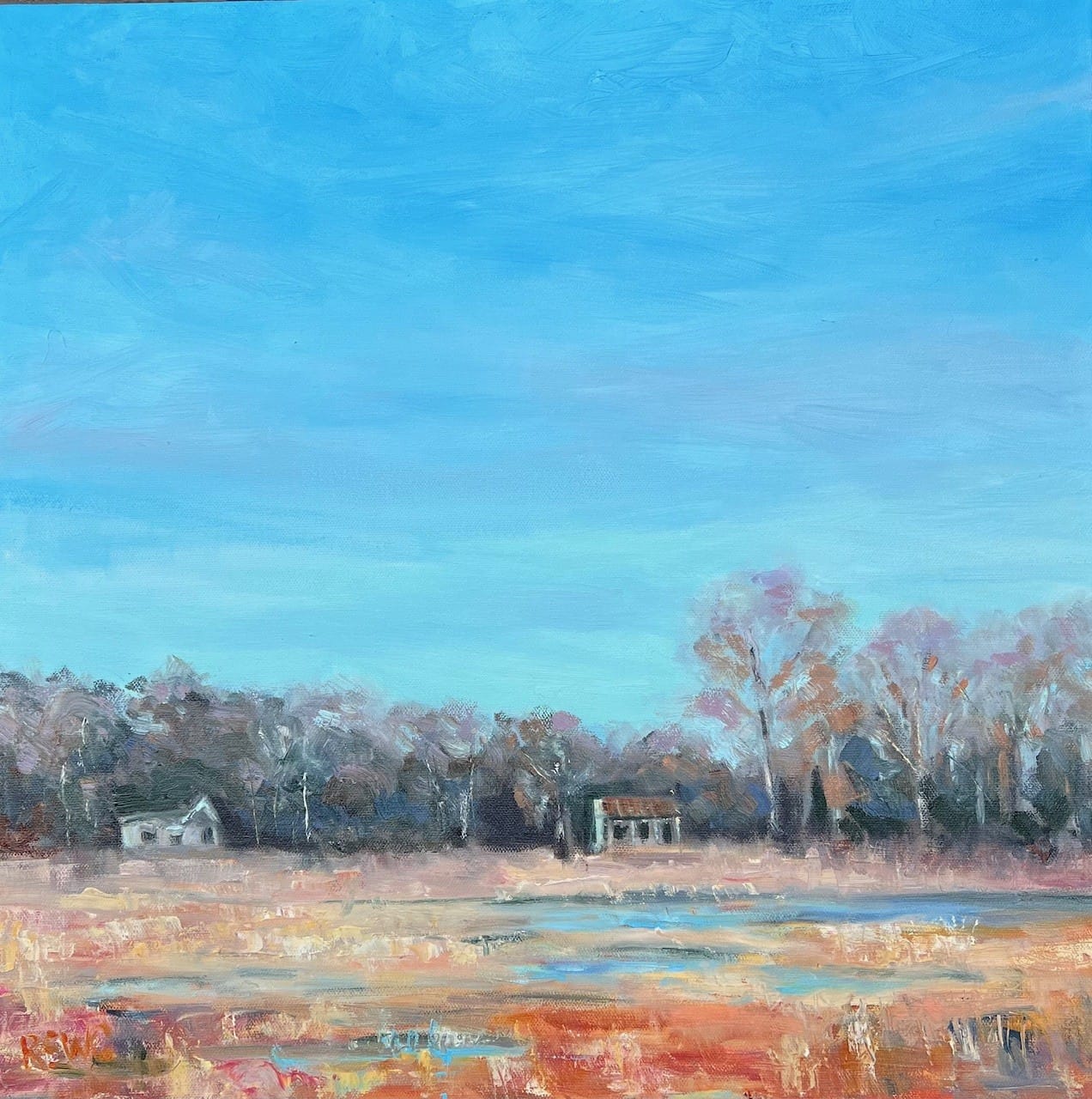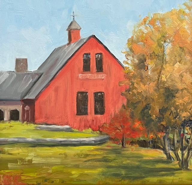 Not a fan of plein air painting, Walsh-Cooke says, “It’s difficult with oils and it get messy when it’s windy, but I’ve painted at Wright-Locke Farm.
