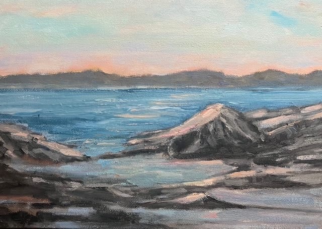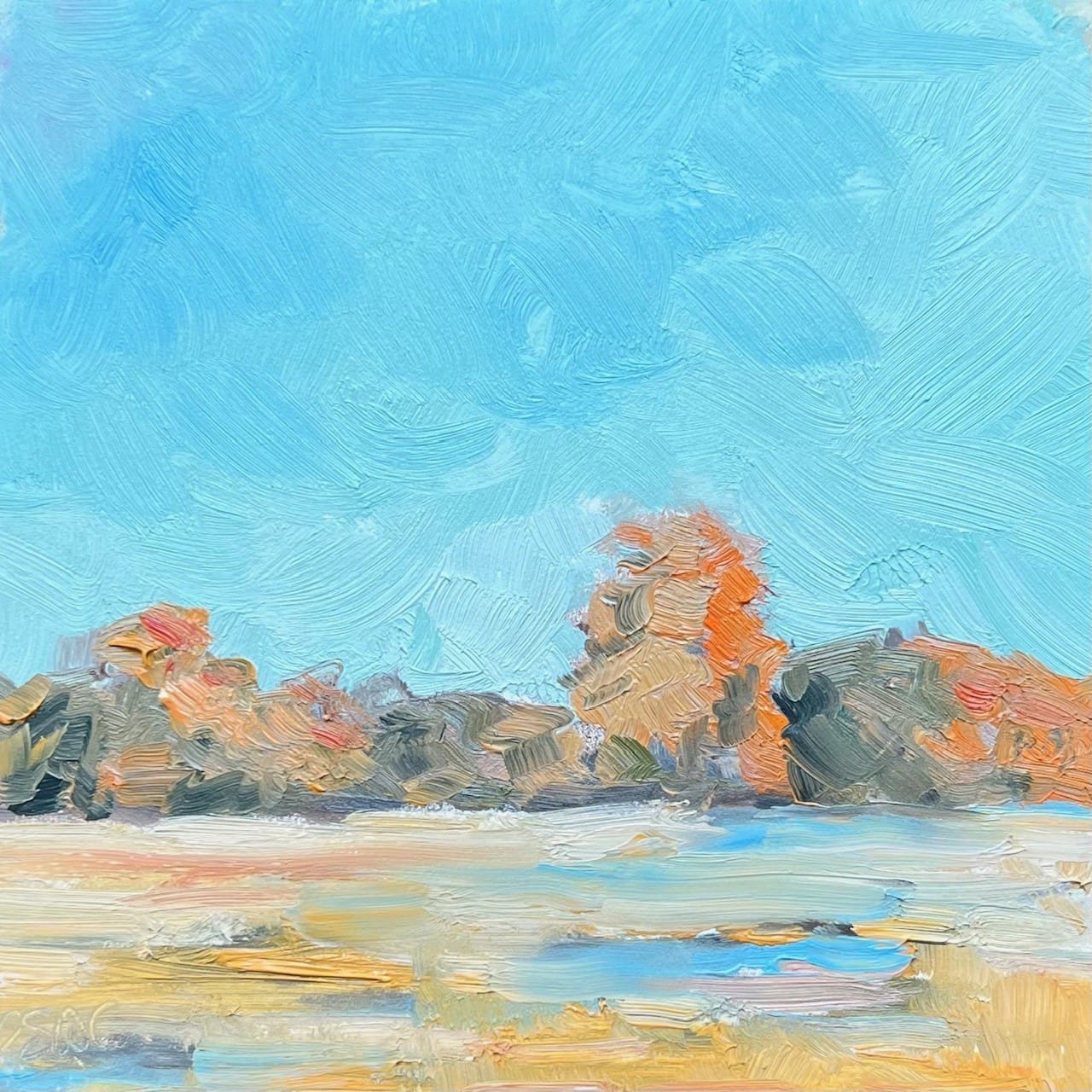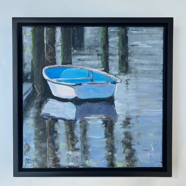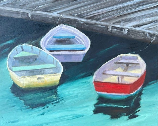 “I did A-levels in art, although I didn’t study art in college — but it was always a hobby. When we moved to the area, I was looking for something to do when my husband Mark went cycling and my daughter was in day care. I took an oil painting class in Lexington,” she says.
