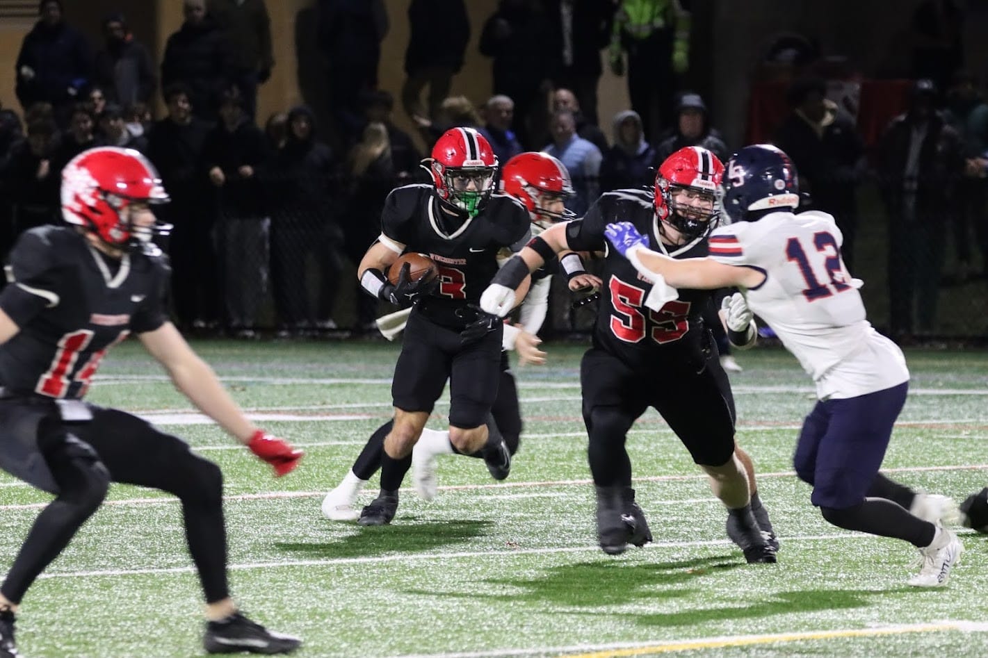 The Red & Black (10-0, fourth seed) defeated Lincoln-Sudbury (8-2, fifth seed) last Friday night at Knowlton Stadium, 38-21 to advance to tonight’s (Nov. 21) aforementioned next big game in Medford. The Knights will have to find a way to contain an offense that continues to rollover the opposition to the tune of 422-111 after 10 games.