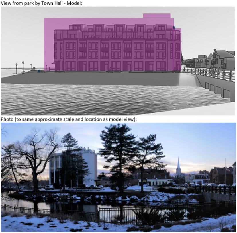 “This site represents the only privately owned parcel on the Mill Pond and what we decide here will potentially determine whether the public has access to the open space on this property or is excluded,” he said. “If done right, this project could provide a diversity of housing at various sizes and price points both affordable and market rate, new commercial space including waterfront dining, and a public park-like amenity.