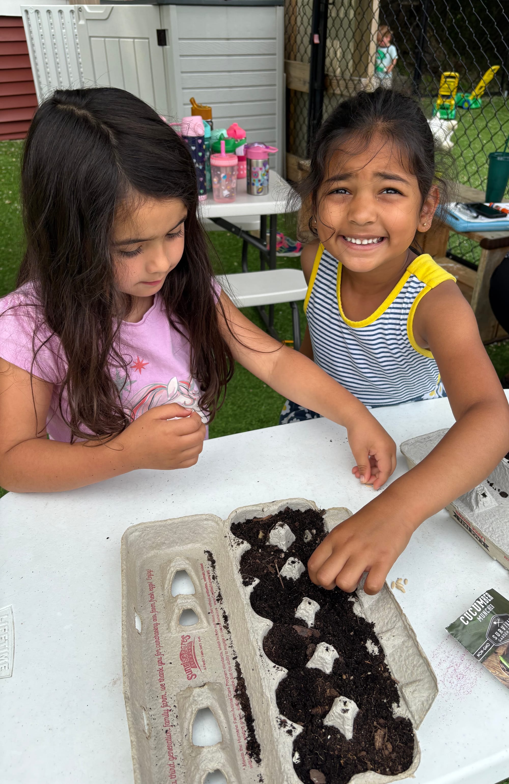 Through gardening, children strengthen physical and sensory skills as they dig, plant, and care for growing vegetables. They build math and science knowledge by counting and sorting seeds, measuring soil and water, and observing life cycles and the role of insects.