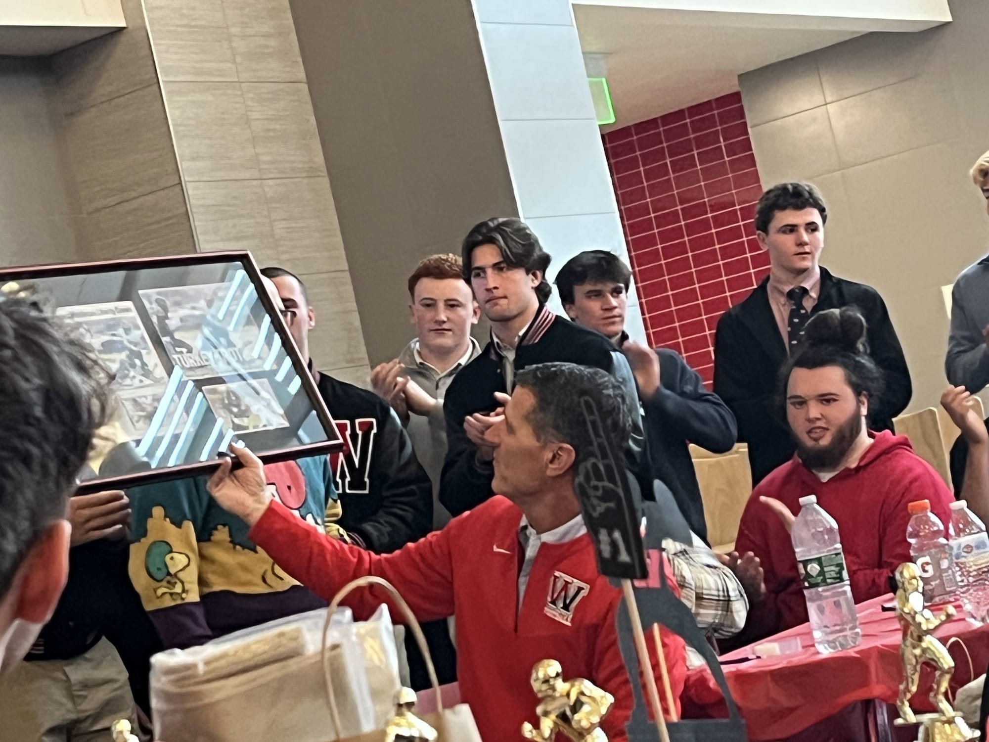 The Winchester High football team might have fallen short of its ultimate Gillette Stadium goal, but there was still plenty of positives to celebrate, and so on Dec. 6, at the WHS cafeteria, the Red & Black got together one last time for a team brunch and awards ceremony to recall this historical season.