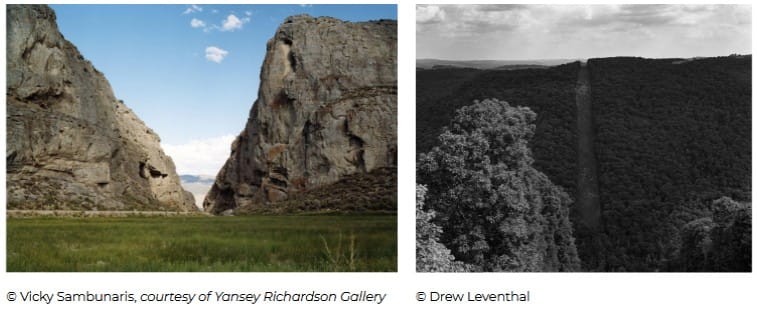 The Griffin Museum’s exhibition Manifest Destiny revisits this legacy through a contemporary lens, bringing together photographers who investigate the layered histories held within the American landscape. The artists in this exhibition create images that bear witness to transformation, revealing human stories embedded in the land’s somber monumentality. Here, the emptiness of the landscape becomes a site of tension — between absence and presence, memory and erasure.