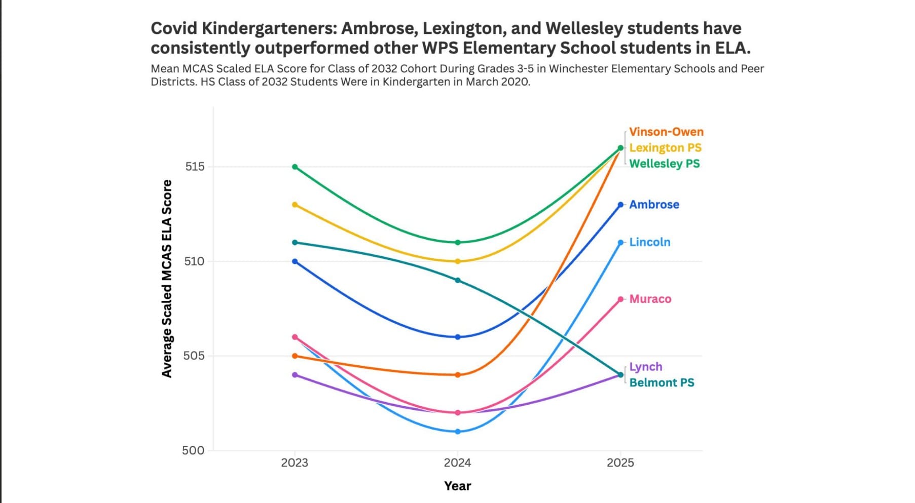 How are COVID Kindergartners doing now that they are in grades 3-5? A report by the School Department shows how students are doing in math and ELA. COURTESY PHOTO/WINCHESTER PUBLIC SCHOOLS