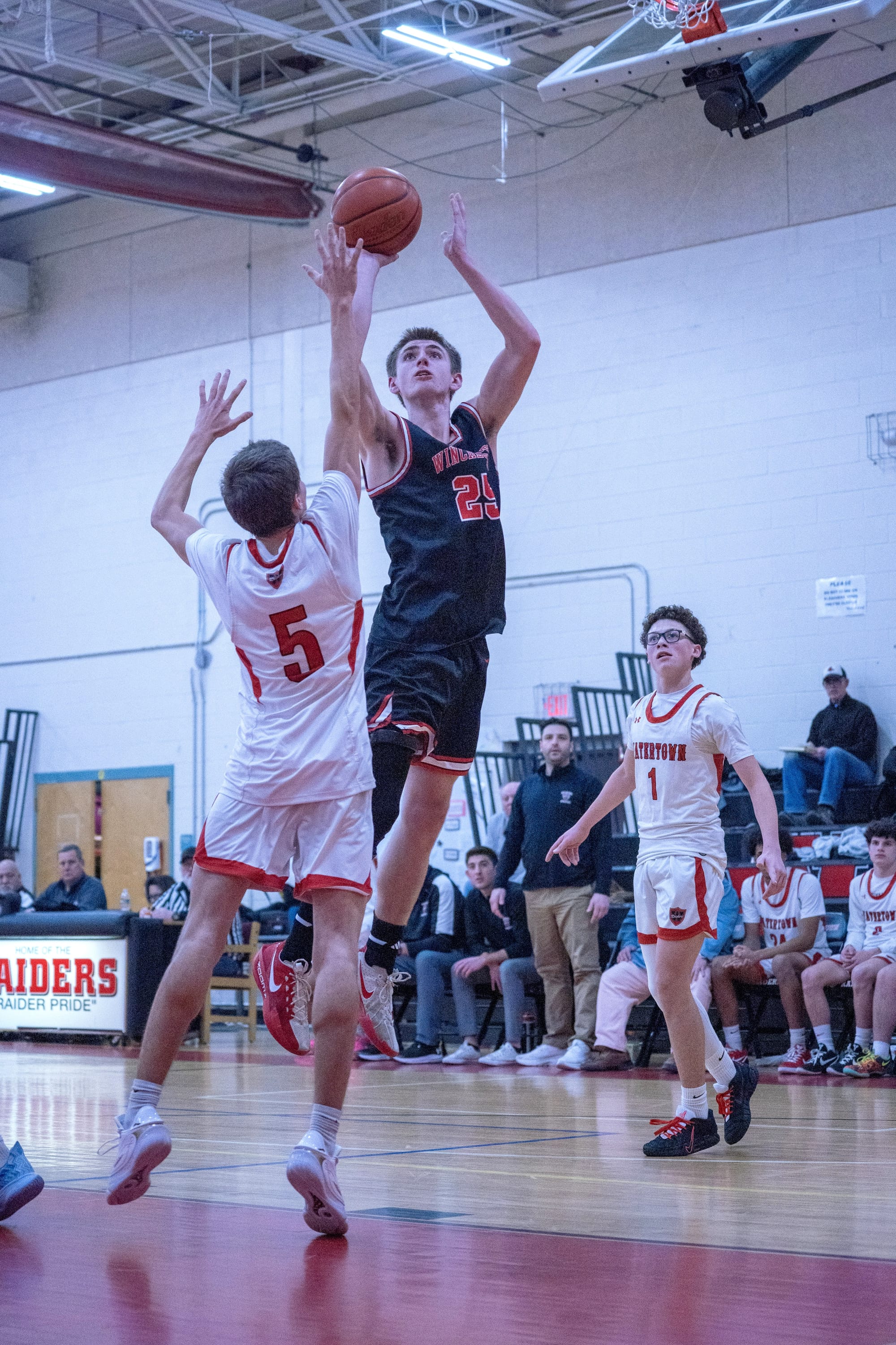 But despite their hot shooting, the Winchester visitors were still able to keep up on offense, before their defensive intensity took over in the second half, particularly in the fourth quarter, where easy offensive opportunities were created against Watertown’s zone defense.