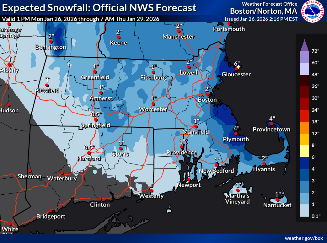 The National Weather Service has predicted some additional light snow from Jan. 26 through Jan. 29, about 2 inches in the Greater Boston area. Temperatures are also expected to drop.