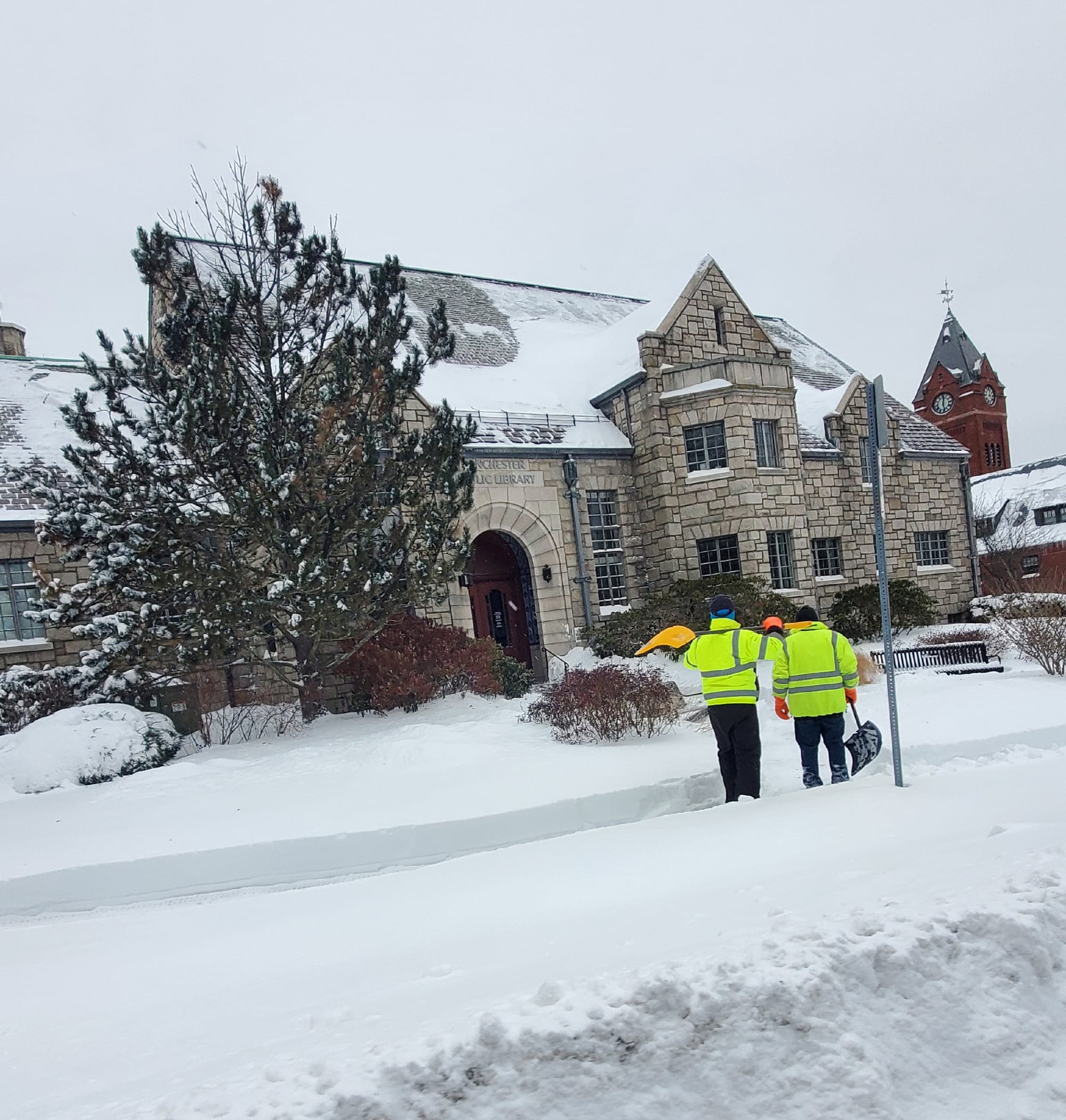 Flurries were still falling Monday afternoon as Winchester residents dug out. Many stores in downtown were closed, as was Town Hall and Winchester Public Schools.