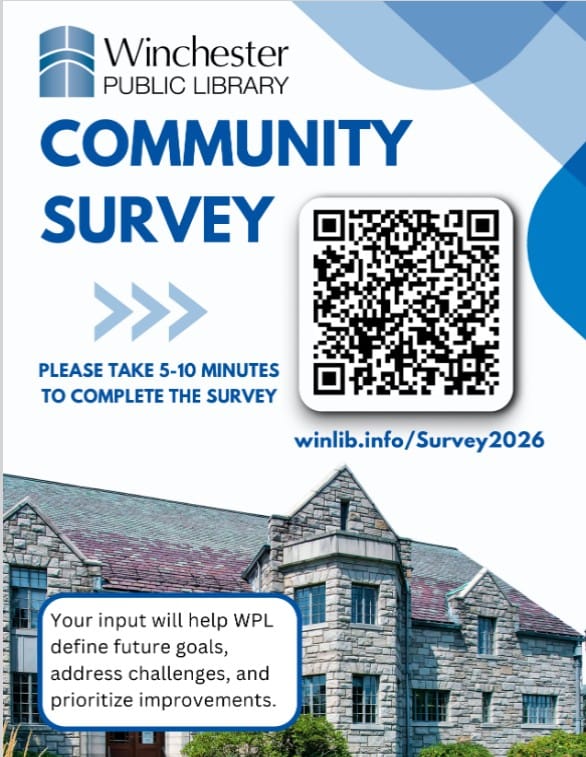 The Winchester Public Library would love to hear from you: what you like about the library, any changes you’d like to see, whether you prefer physical media or online resources, if your children visit the library, what kinds of events you’d like to see.