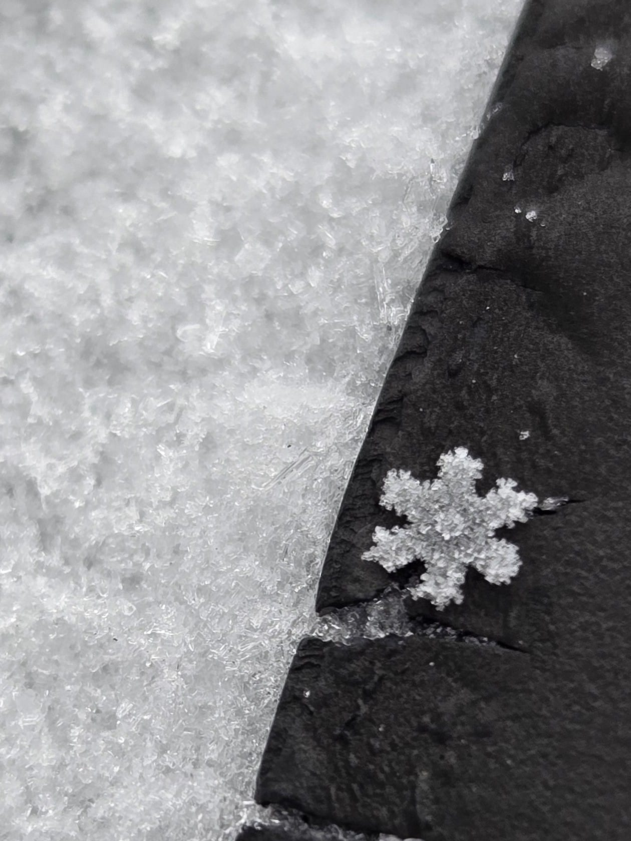 Below is a photo of a perfect snowflake on the curb. All we want to know is: how did Deborah get this amazing shot?