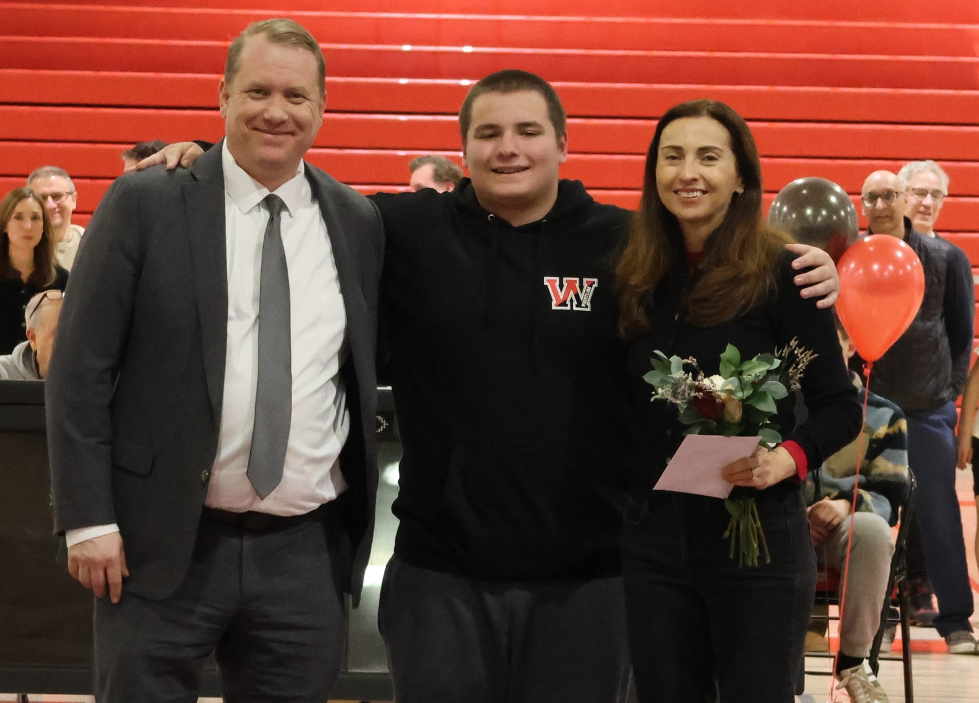 “We (honored) our 15 seniors, who have been grinding it out with the usual ups and downs the last four years,” said Assistant Coach Vitaly Napadow. “It was a moment to also thank the wrestling moms and dads, who came out to support the team for our last home dual match of the season.”