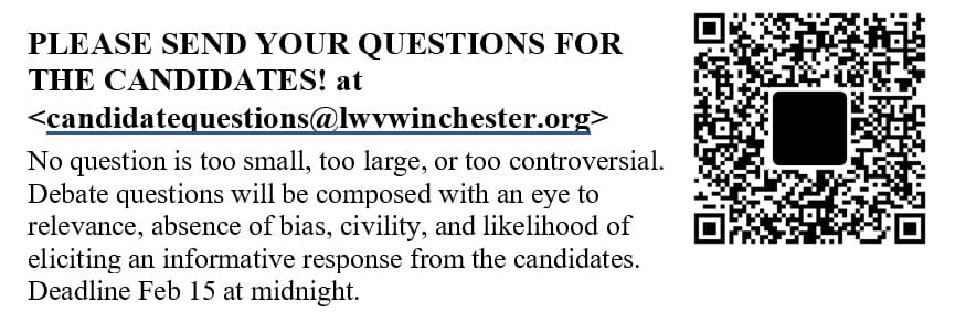 The debates will be moderated by a LWV moderator from a League chapter outside of Winchester.