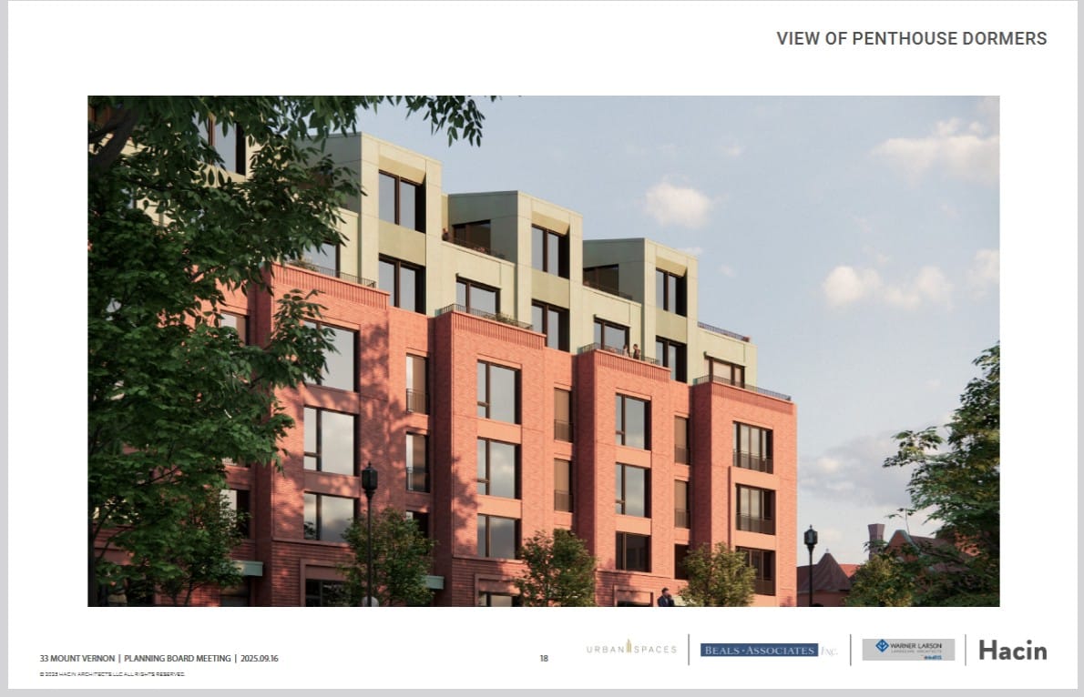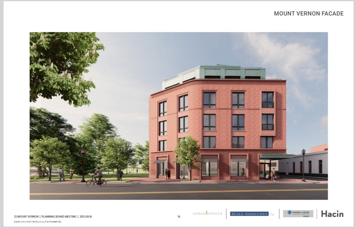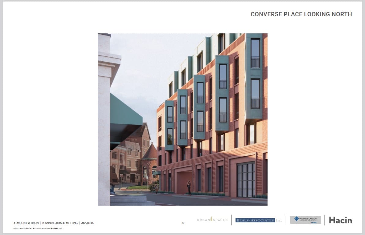 The Planning Board has unanimously approved a special permit for a proposed residential building at 10 Converse Place/33 Mt. Vernon Street at five stories with no affordable housing.