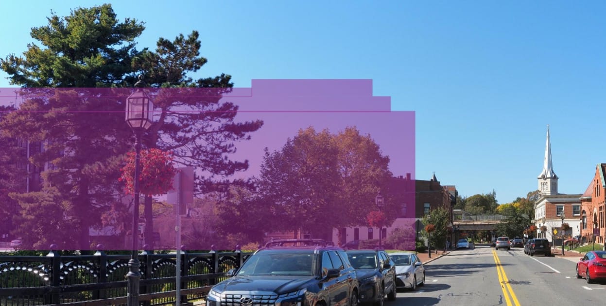 By September 2025, Urban Space developer Paul Ognibene downsized the project to almost 15,000 square feet, hugging the street and leaving open space next to the pond. There were also changes in the design to recess the top floors to “make a six-story building look like a five-story one,” in Ognibene’s words.