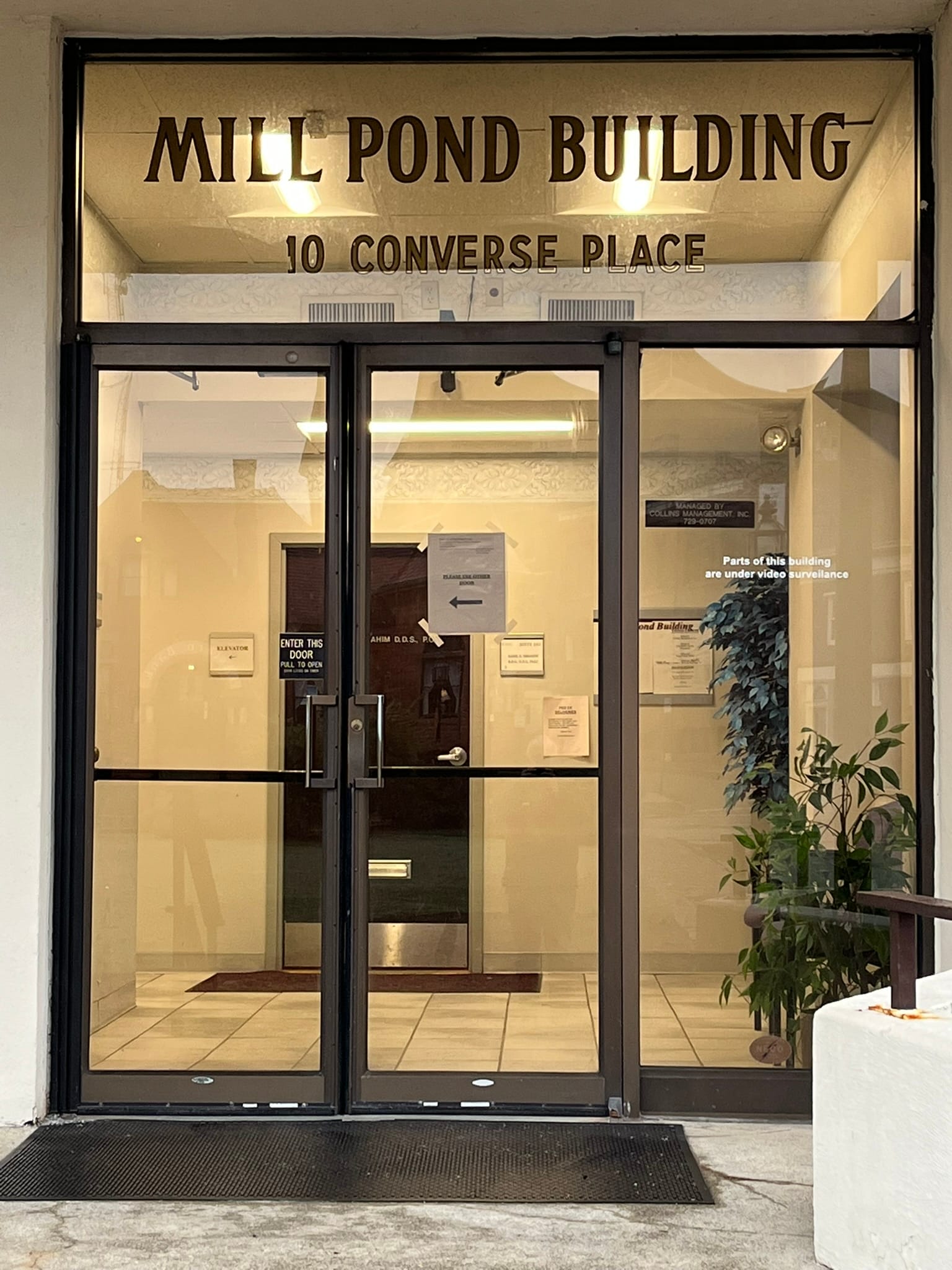 Eleven months ago, the plan for the development was for a 17,000 square foot, six-story, 69-foot high, 43-47 unit building with a commercial space on the ground floor and underground parking that covered nearly the entire area between 10 Converse Place and Mill Pond.