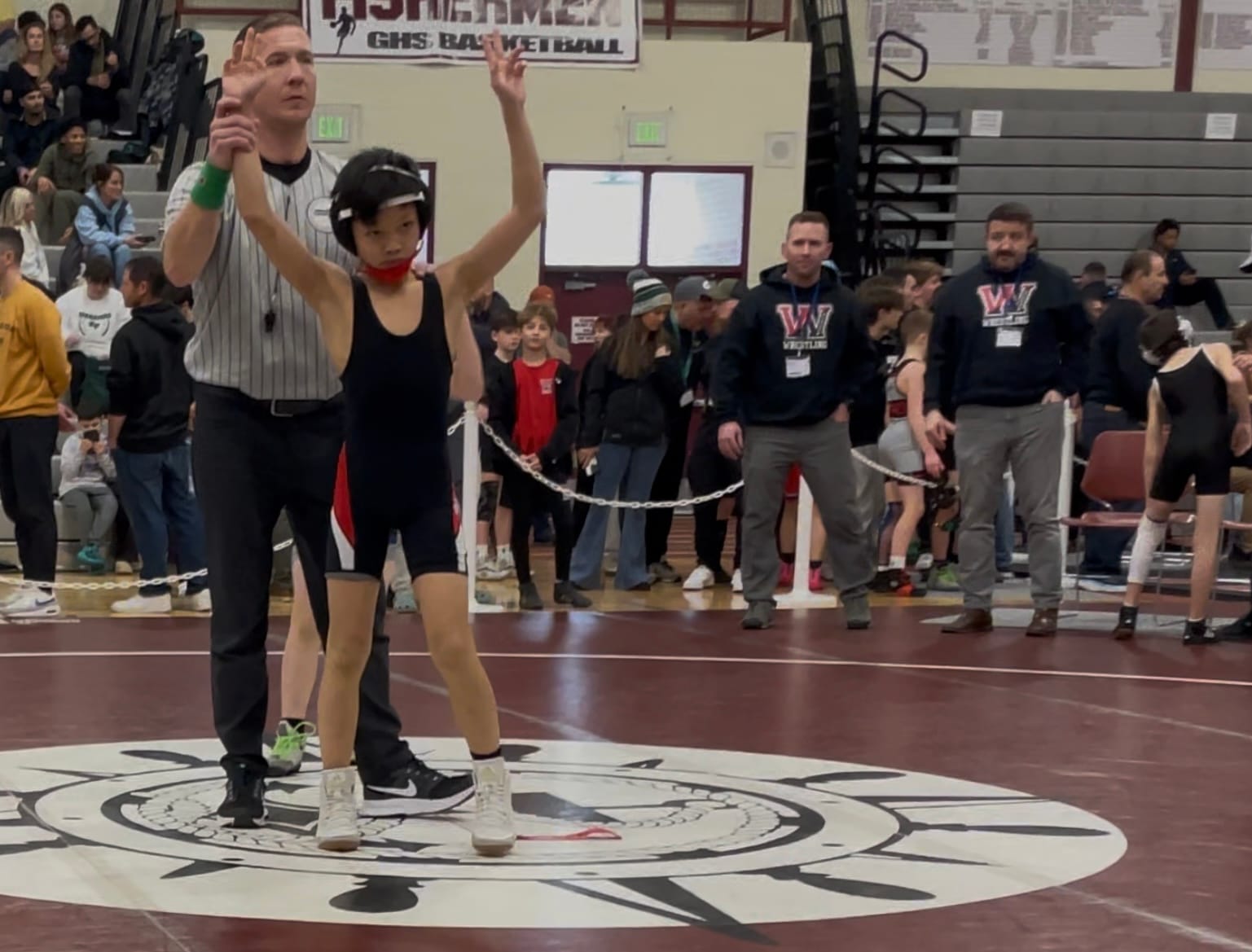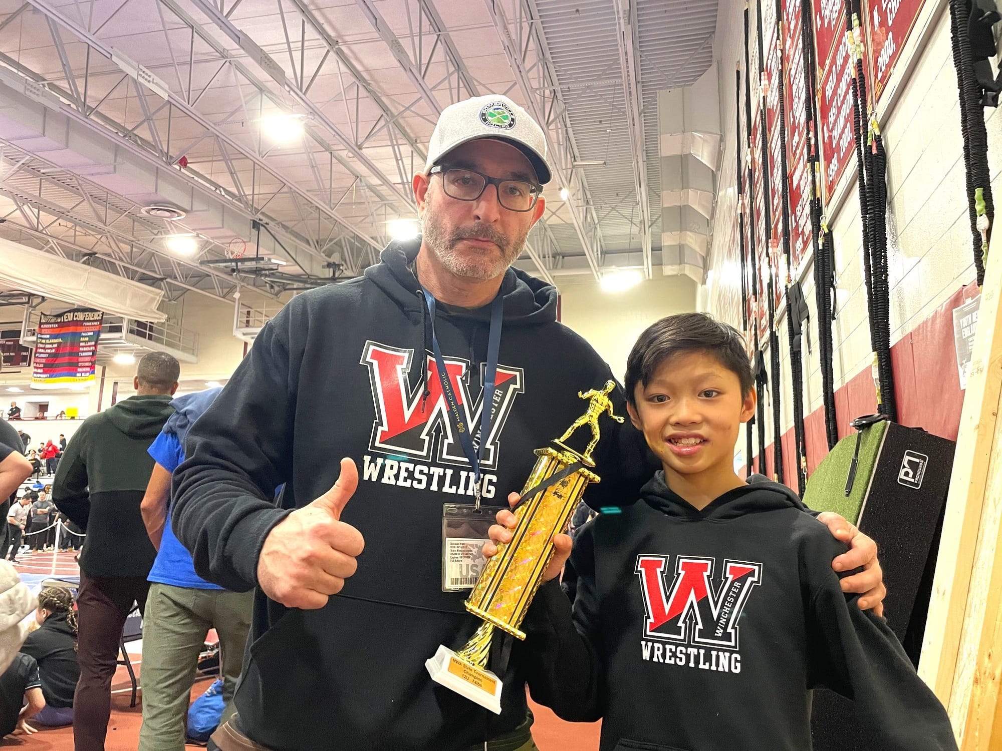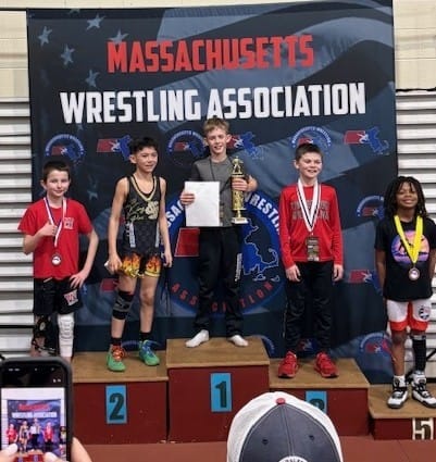 The coaches conduct practices twice per week starting in November on the new mats at the Rec Department’s Main Street facility. On this level, it’s all about teaching technique, but there’s also weekend competitions for the Winchester grapplers in the Northeast Regional League.