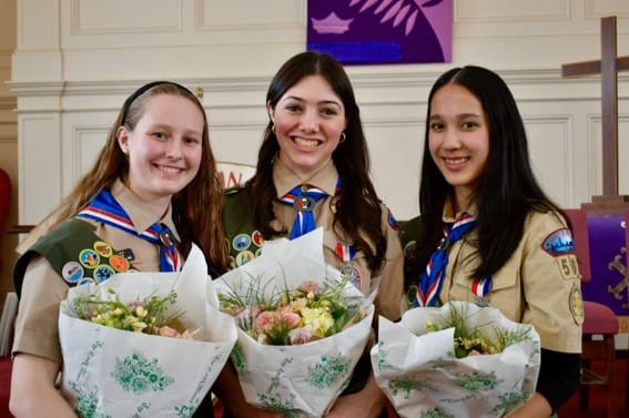 In a landmark event on March 7 at Crawford Memorial Church in Winchester, Troop 507 celebrated Isabella Bogovich, Madison von Mering, and Renee Lubomirski as the first three female Eagle Scouts in its history.
