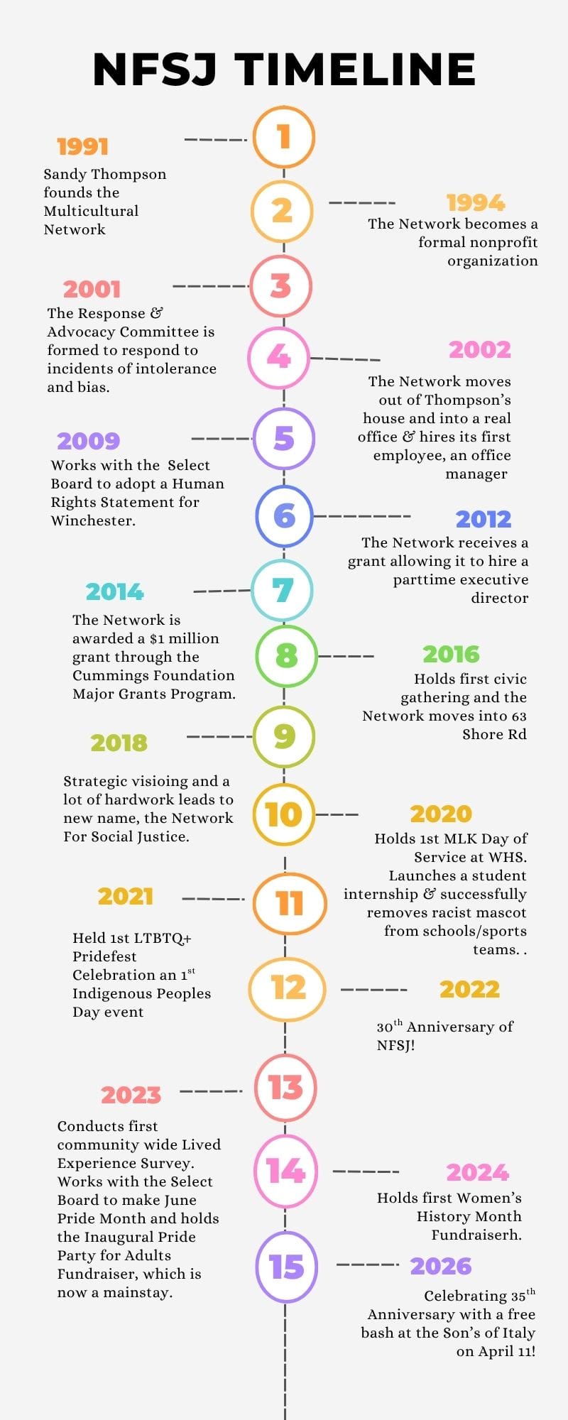 The Network For Social Justice will celebrate its 35th anniversary on Saturday, April 11, from 7-9:30 p.m., at the Sons of Italy, 117 Swanton St., Winchester. RSVP HERE
