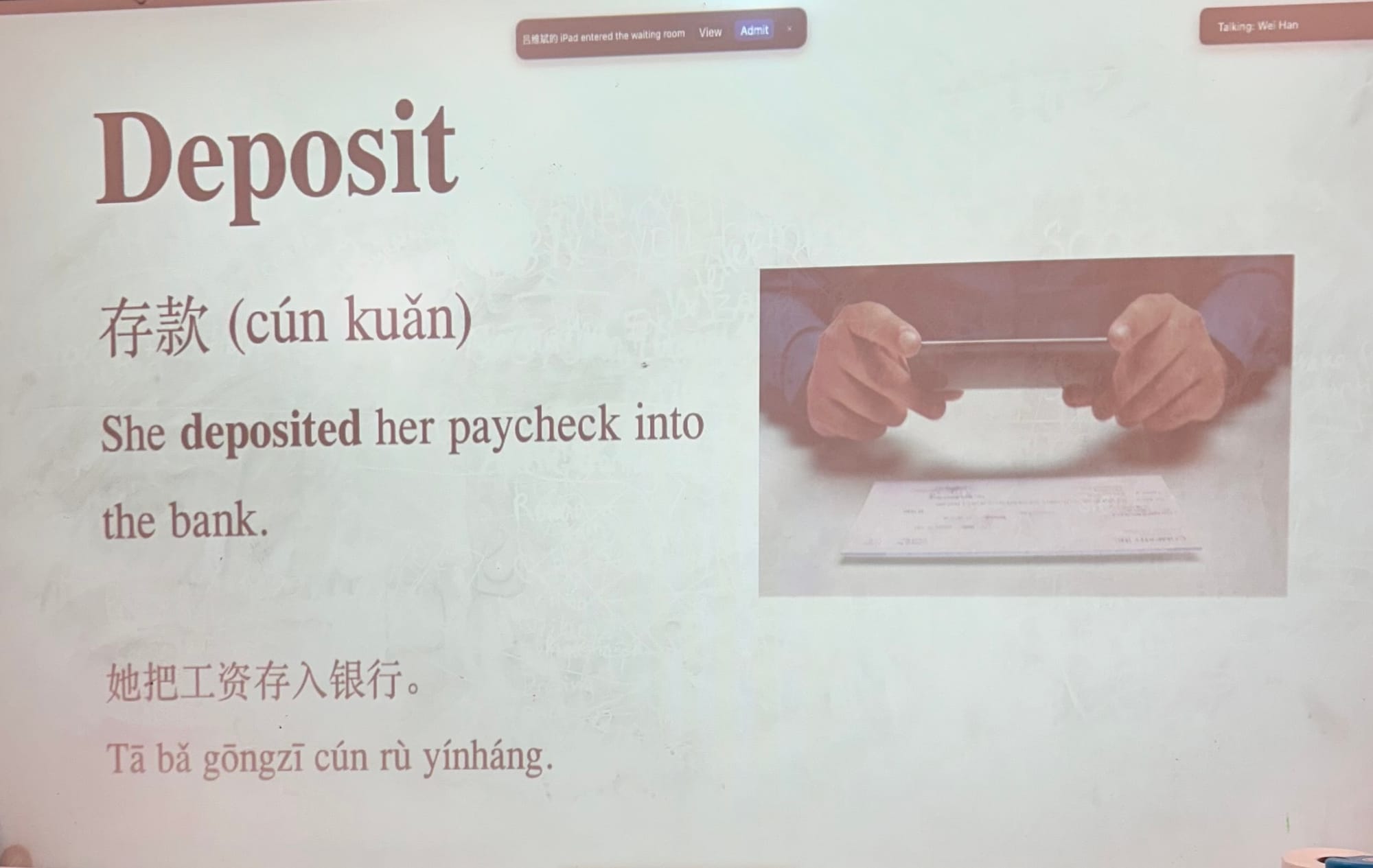 “We work on a different topic each week,” says Han, “such as banking terms, as well as words needed at grocery stores, on the T, or the doctor or a pharmacy.”
