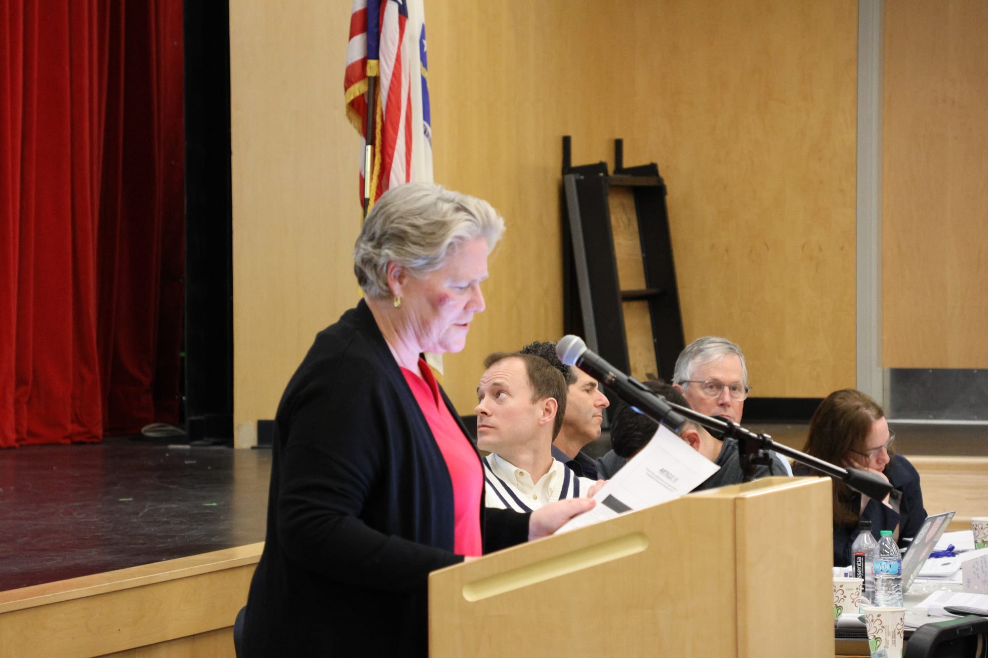 The fiscal squeeze showed up first in Article 15. The Select Board came in asking for a $1 million deposit into the General Stabilization Fund and amended its own request down to $750,000 on the floor. Select Board Chair Michelle Prior said the change reflected remaining fiscal year obligations — including snow and ice costs and Fire Department personnel expenses — that will draw on free cash before June 30. The fund currently holds $5.4 million, well short of the $10 million floor that Moody’s and the state Department of Revenue recommend.